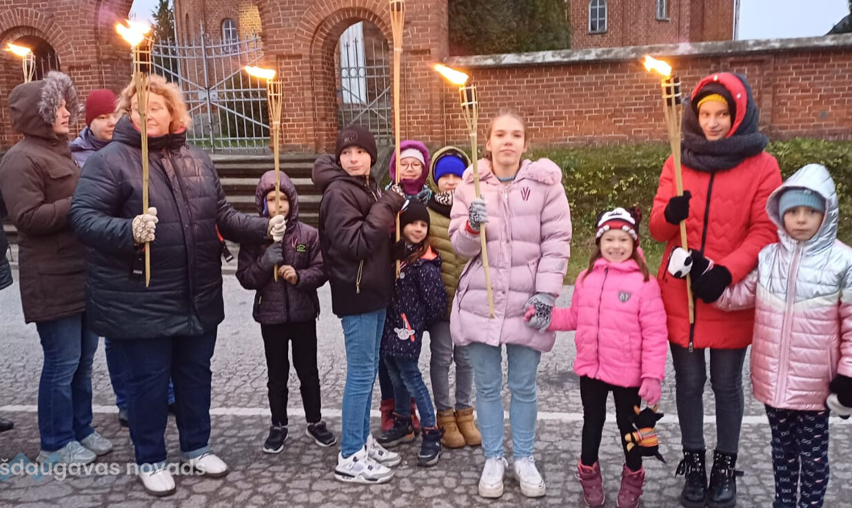 Kalupes draudzes ļaudis, arī skolas mazpulcēni, piedalījās Svētajā Misē Kalupes Vissvētākā Altāra sakramenta Romas katoļu baznīcā, aizlūdzot par mūsu varoņiem, par brīvību Latvijā. Aizkustinošs bija lāpu gājiens līdz Kalupes Baltaču kapsētai, pie Bronislava Šaršūna piemiņas vietas. Godinot mūsu valsts aizstāvjus, nolikām ziedus, svecītes un vienojāmies kopējā dziesmā.