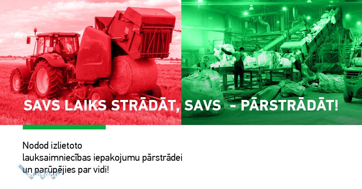 Tuvojoties rudens sezonālo darbu noslēgumam, zemnieku saimniecībās arvien biežāk rodas jautājums, ko darīt ar uzkrātajiem lauksaimniecības iepakojumiem. Šobrīd Latvijā to savākšanu organizē vien daži oficiāli komersanti, tomēr līdzīgi kā citiem iepakojumiem, arī pēc lauku darbiem palikušajiem materiāliem ir svarīga pareiza apsaimniekošana. Vides apsaimniekošanas uzņēmums SIA “Eco Baltia vide” un Latvijas Zaļais punkts aicina no lauksaimniecības iepakojumiem atbrīvoties ar atbildību un videi draudzīgā veidā. “Eco Baltia vide” visā Latvijā nodrošina to savākšanu no saimniecībām, kā arī piedāvā iespēju nogādāt uz kādu no uzņēmuma atkritumu šķirošanas filiālēm, kas atrodas Daugavpilī, Madonā, Aizkrauklē, Bauskā un Rumbulā.