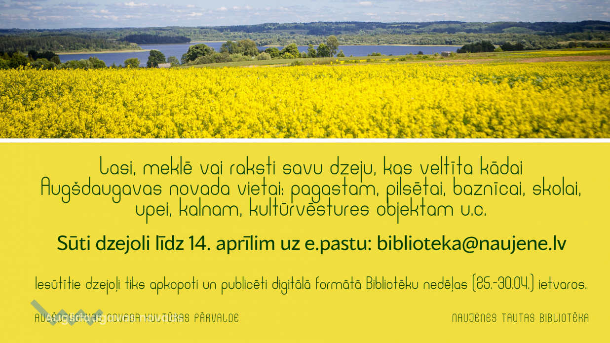 Atrasto dzejoli lūdzam līdz 14. aprīlim iesūtīt Naujenes tautas bibliotēkai uz e. pastu: biblioteka@naujene.lv.