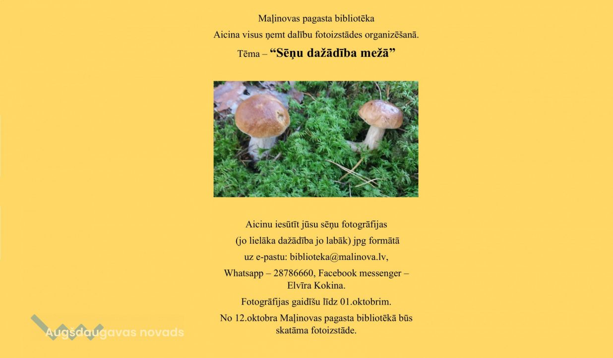🍄Maļinovas pagasta bibliotēka aicina visus ņemt dalību fotoizstādes organizēšanā. Tēma - "Sēņu dažādība mežā". Sēņu fotogrāfijas jāiesūta (jo lielāka dažādība, jo labāk) jpg formātā:
