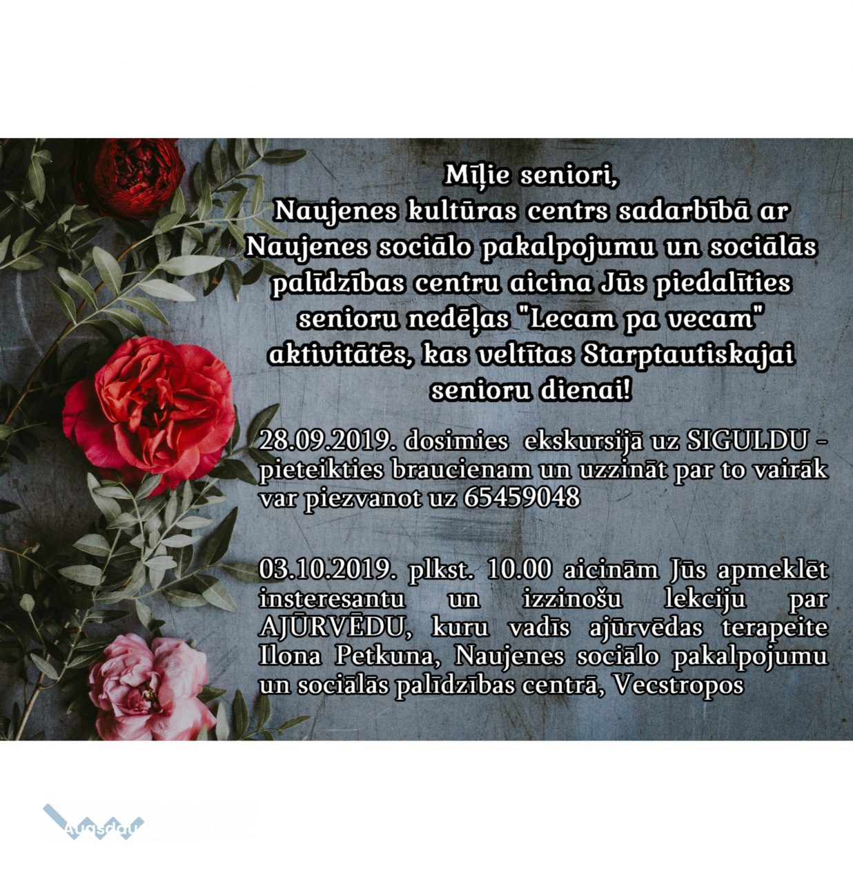 Pavisam drīz jau klāt būs svētki – Starptautiskā senioru diena, tieši tāpēc aicinām Jūs piedalīties senioru nedēļas “Lecam pa vecam” aktivitātēs: