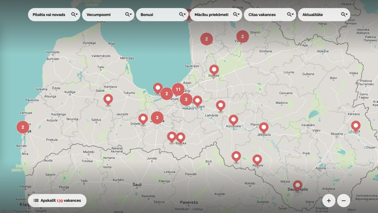 Skolotājs savukārt var izvēlēties sev atbilstošāko vakanci, atlasot tās pēc skolas atrašanās vietas, mācību priekšmeta, vecumposma u.tml. Kartē ir pieejama skolas norādītā informācija par pieejamo darba vietu, kā arī līdzīgas vakances citur Latvijā, atvieglojot meklēšanas procesu.