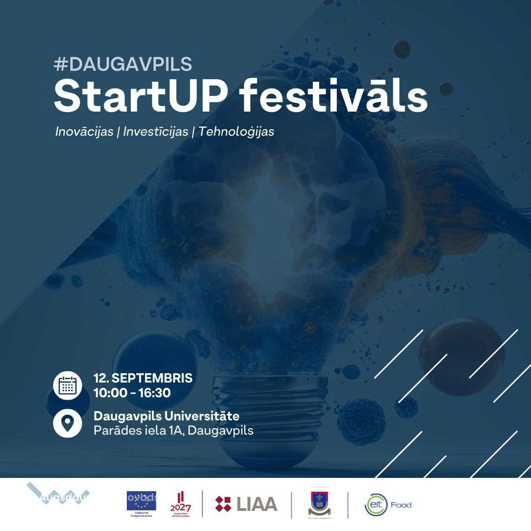 Vai Tevi interesē inovācijas, tehnoloģijas un uzņēmējdarbība? 12. septembrī Daugavpilī notiks “StartUP festivāls #Daugavpils” - iedvesmojošs pasākums jaunuzņēmumiem, ideju autoriem, uzņēmējiem un investoriem!