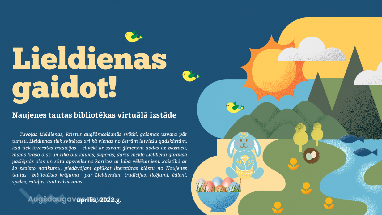 Saistībā ar šo skaisto notikumu, piedāvājam aplūkot literatūras klāstu no Naujenes tautas bibliotēkas krājuma par Lieldienām: tradīcijas, ticējumi, ēdieni, spēles, rotaļas, tautasdziesmas...