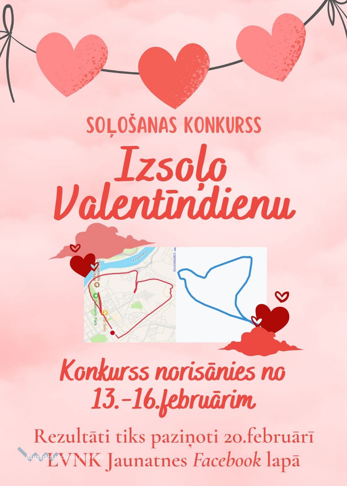 Pastaigas maršrutu izveidot tādu, lai rezultātā rastos kāds Valentīndienai raksturīgs zīmējums (sirds, zieds, Amora bulta utml).