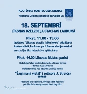 18. septembrī, Plkst. 11.00 - 13.00, Līksnas dzelzceļa stacijas laukumā: