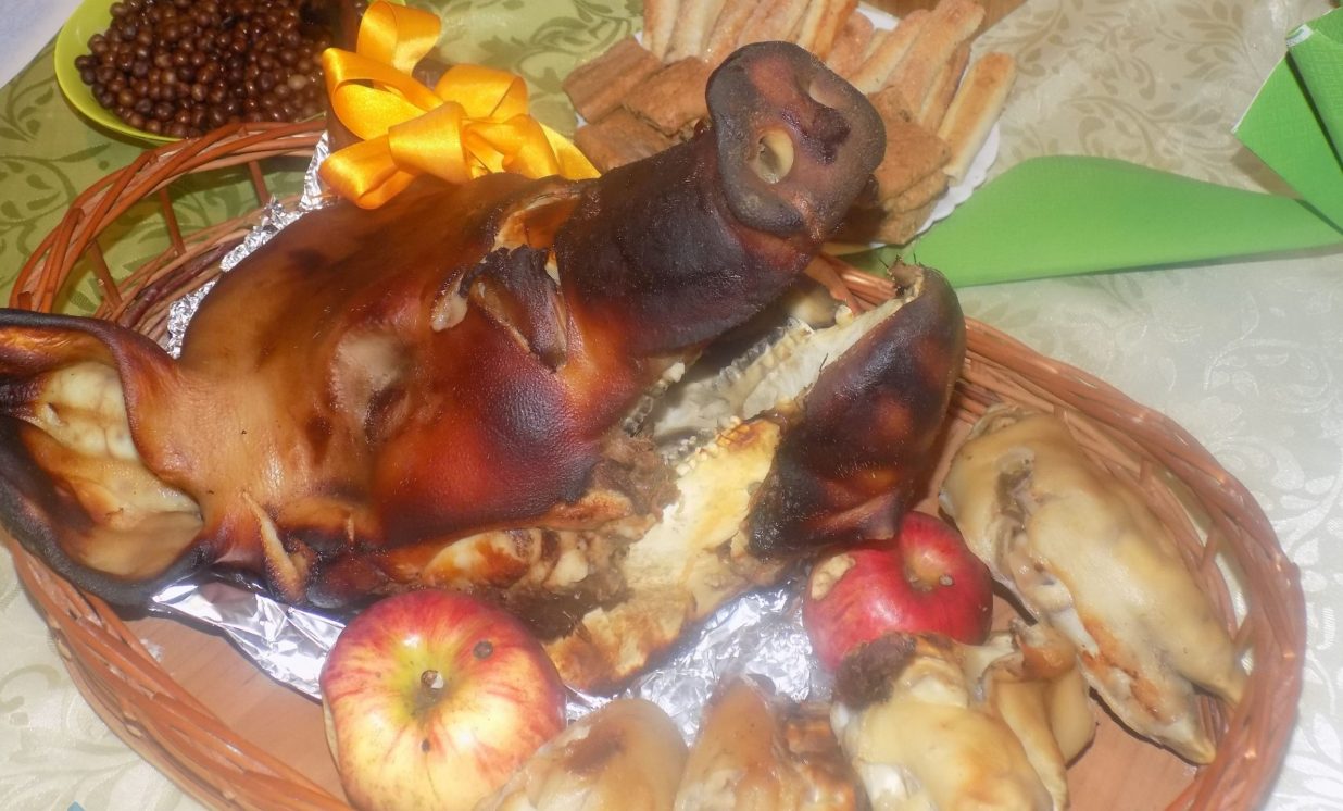 Cūkas galva rociņā.