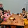 “Ja tev nav naudas vai mantas, dalies ar smaidu, dalies ar maizes riecienu. Šodien mums ir sacepta apaļas formas maize, jo kantaina ar stūriem nedrīkst būt. Ir jābūt biezputrai no grūbu putraimiem, kas ir apaļi kā saulīte. Un zāļu tējā ir jābūt medum, lai bitīte zina, ka mēs viņu sveicinām,” stāsta Indra Madarniece.