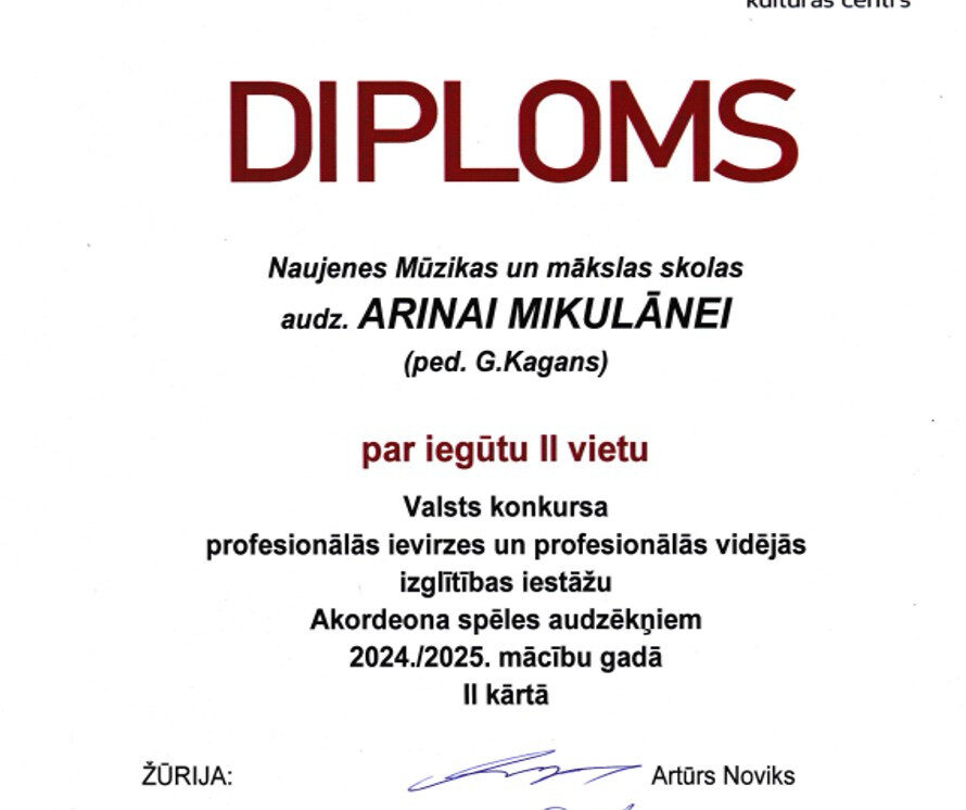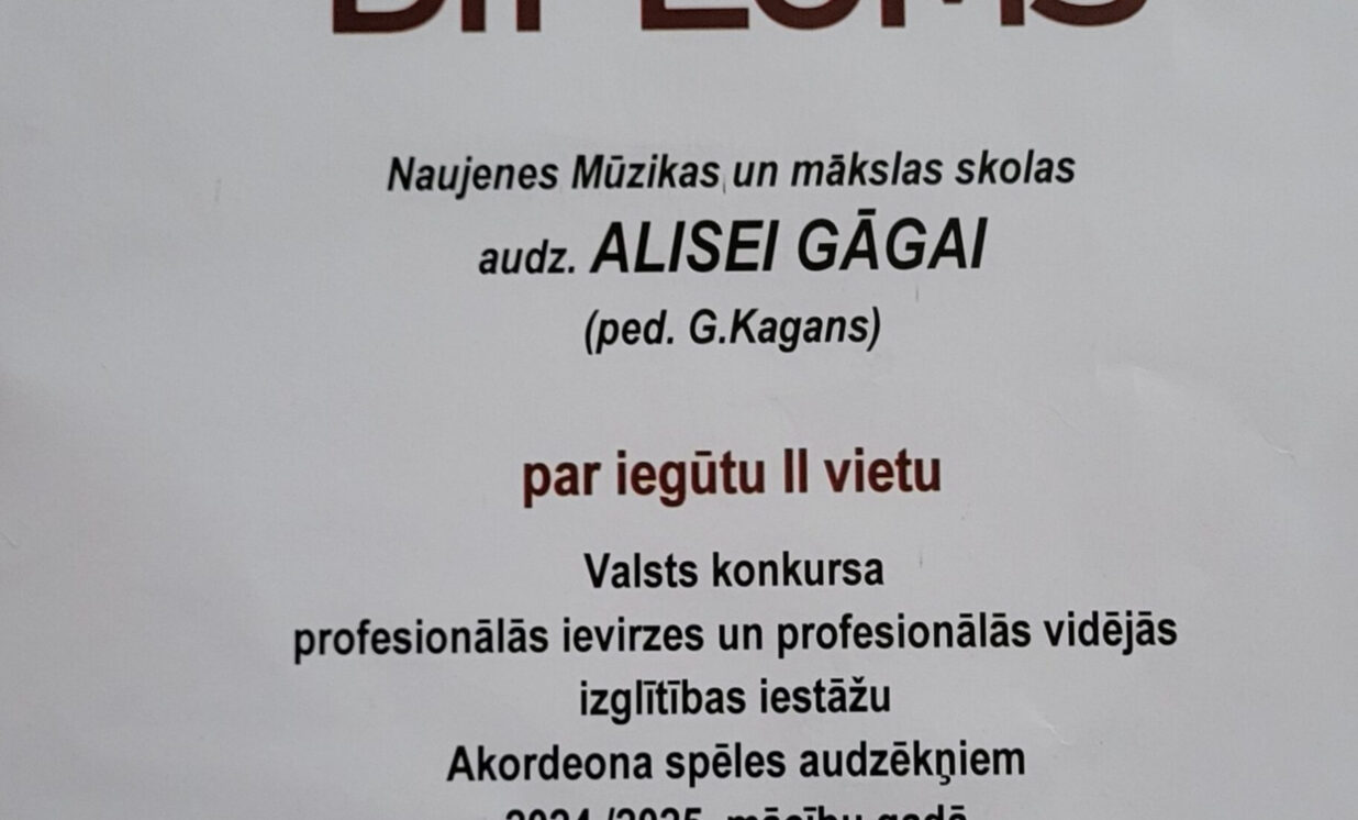 Naujenes Mūzikas un mākslas skolas kolektīvs lepojas ar mūsu skolas audzēkņu sasniegumiem Valsts konkursa II kārtā un izsaka pateicību pedagogiem par audzēkņu sagatavošanu konkursam.