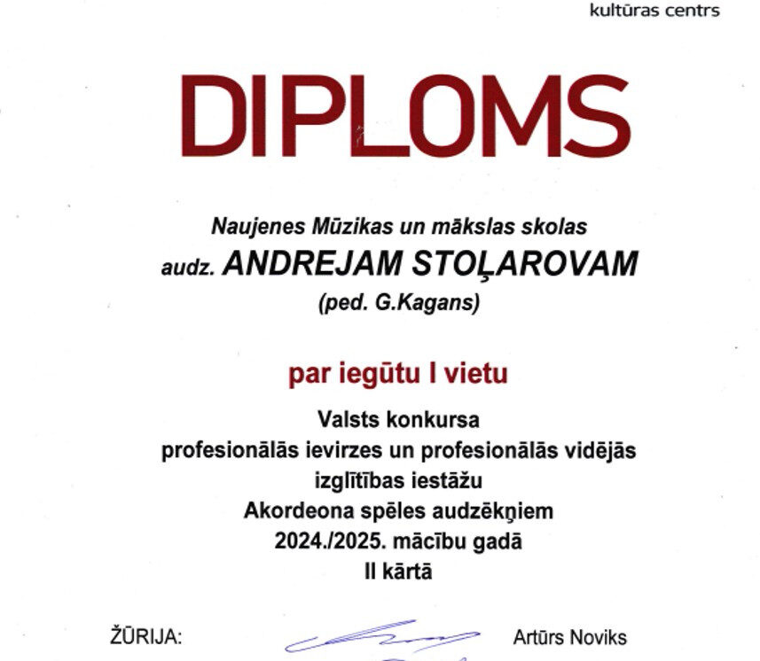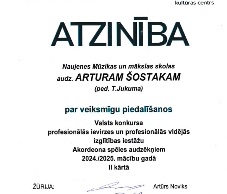 3. klases audzēknis Arturs Šostaks (pedagogs Tatjana Jukuma) – Atzinība;