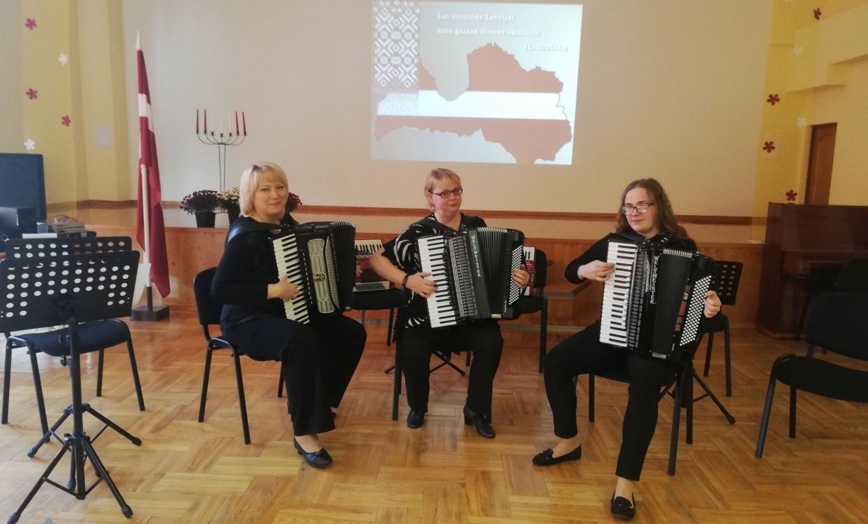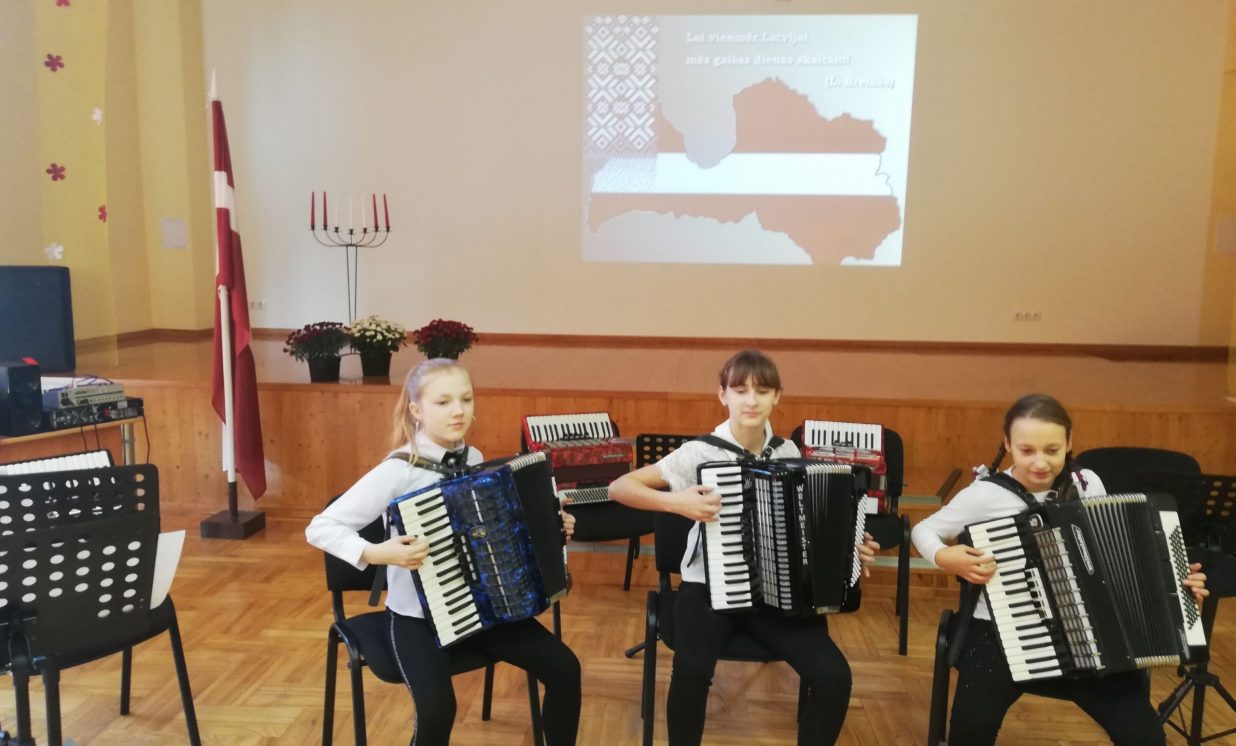 13. un 15. novembrī , pasākumos, kas bija veltīti Latvijas Republikas 101.dzimšanas dienai, veiksmīgi uzstājās Naujenes Mūzikas un mākslas skolas pedagogi, Tatjana Jukuma, Svetlana Vasiļjeva un Jeļena Nitecka, ar saviem audzēkņiem ( Naujenes Mūzikas skolas Skrudalienas mācību punkts) . Ceram, ka jaunie akordeonisti ar savu muzicēšanu sagādāja aizkustinošus mirkļus koncerta dalībniekiem un apmeklētājiem. Paldies Silenes pamatskolas un Salienas vidusskolas administrācijām par ielūgumu un sadarbību!