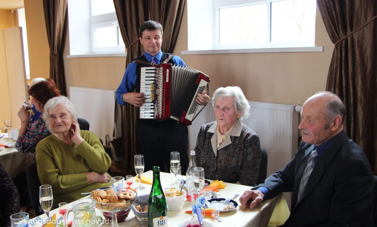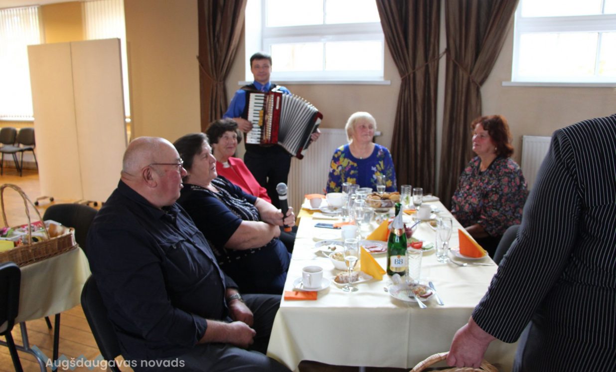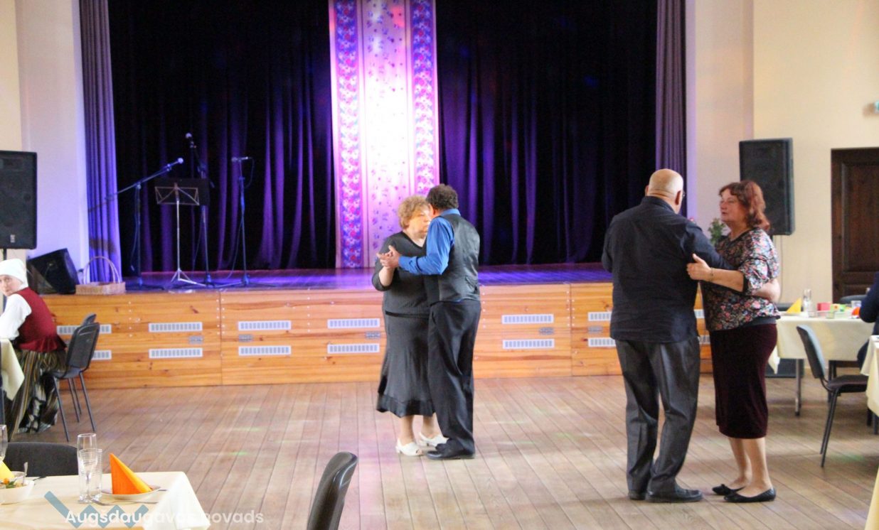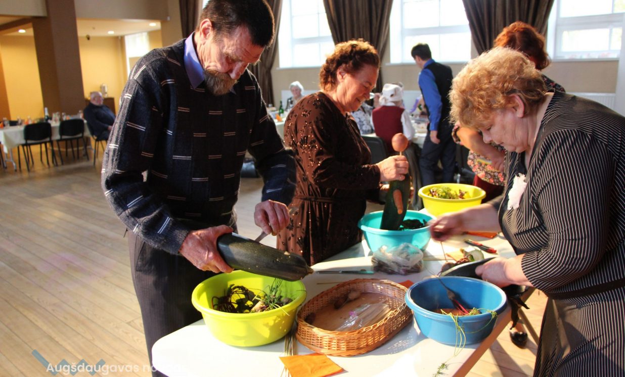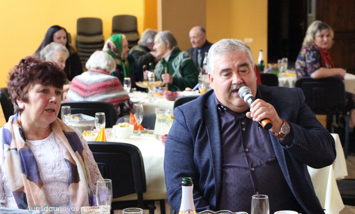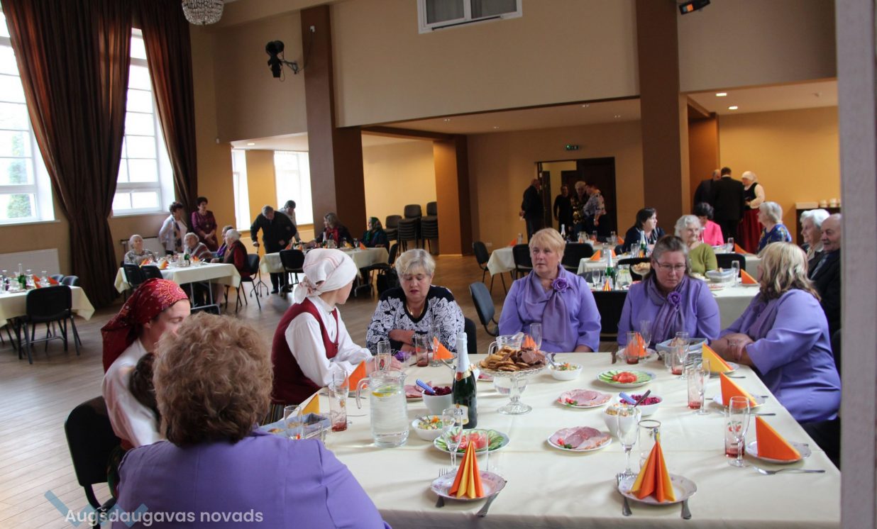 Savus vēlējumus teica arī senioru kopienas vadītāja Rita Matisāne, kura tradicionāli bija sagatavojusi dažādus konkursus un spēles, kurās aktīvi tika iesaistīti visi klātesošie. Dziesmu kari starp galdiņiem, rudens ražas darinājumu konkurss, jautrās stafetes, mīklu minēšana izraisīja daudz jautrības un pozitīvu emociju. Veiksmīgākie un atraktīvākie saņēma balviņas, kuras sarūpēt palīdzēja sociālā darbiniece Janīna Gaidele. Prieks, ka šajā pasākumā bija ieradušies arī seniori, kuru dzīvesvieta šobrīd ir Višķu SAC. Viņus pavadīja iestādes darbiniece Elita Mogiša.