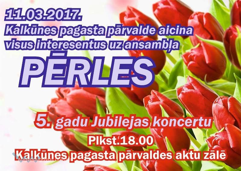 11. martā plkst. 18.00 Kalkūnes pagasta pārvaldes zālē notiks ansambļa "Pērles" 5 gadu jubilejas koncerts. Visi laipni aicināti!