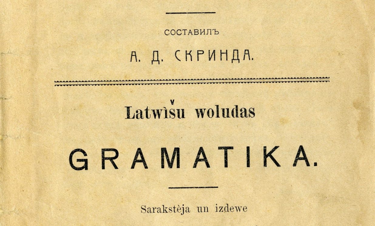 A.Skrindas luga ''Pādejī diwi rubļi'' (1907). Skrindu dzimtas muzeja krājums..A. Skrinda 1908.gadā izdotā gramatika latgaliešu valodā. Skrindu dzimtas muzeja krājumsSkrindu dzimtas muzeja vecākā speciāliste Ilze Ozoliņa