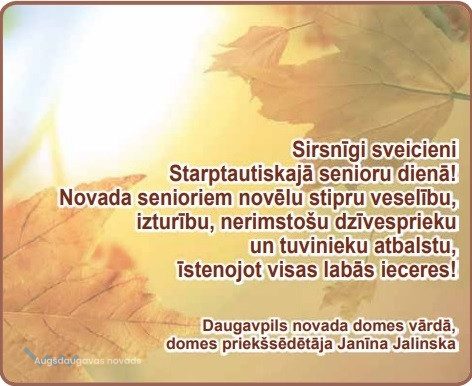 Apsveikums Starptautiskajā senioru dienā