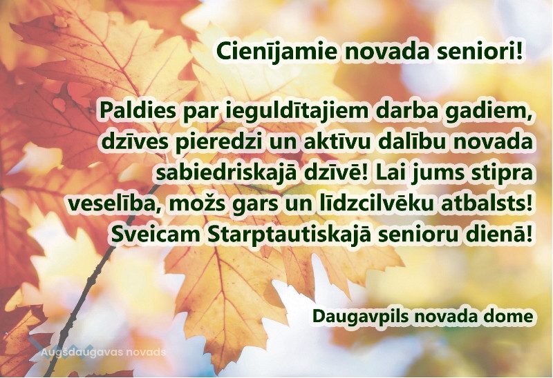 Apsveikums Starptautiskajā veco ļaužu dienā