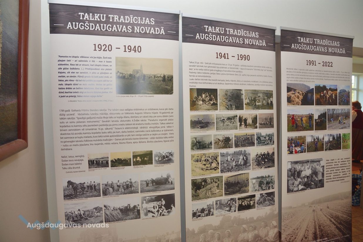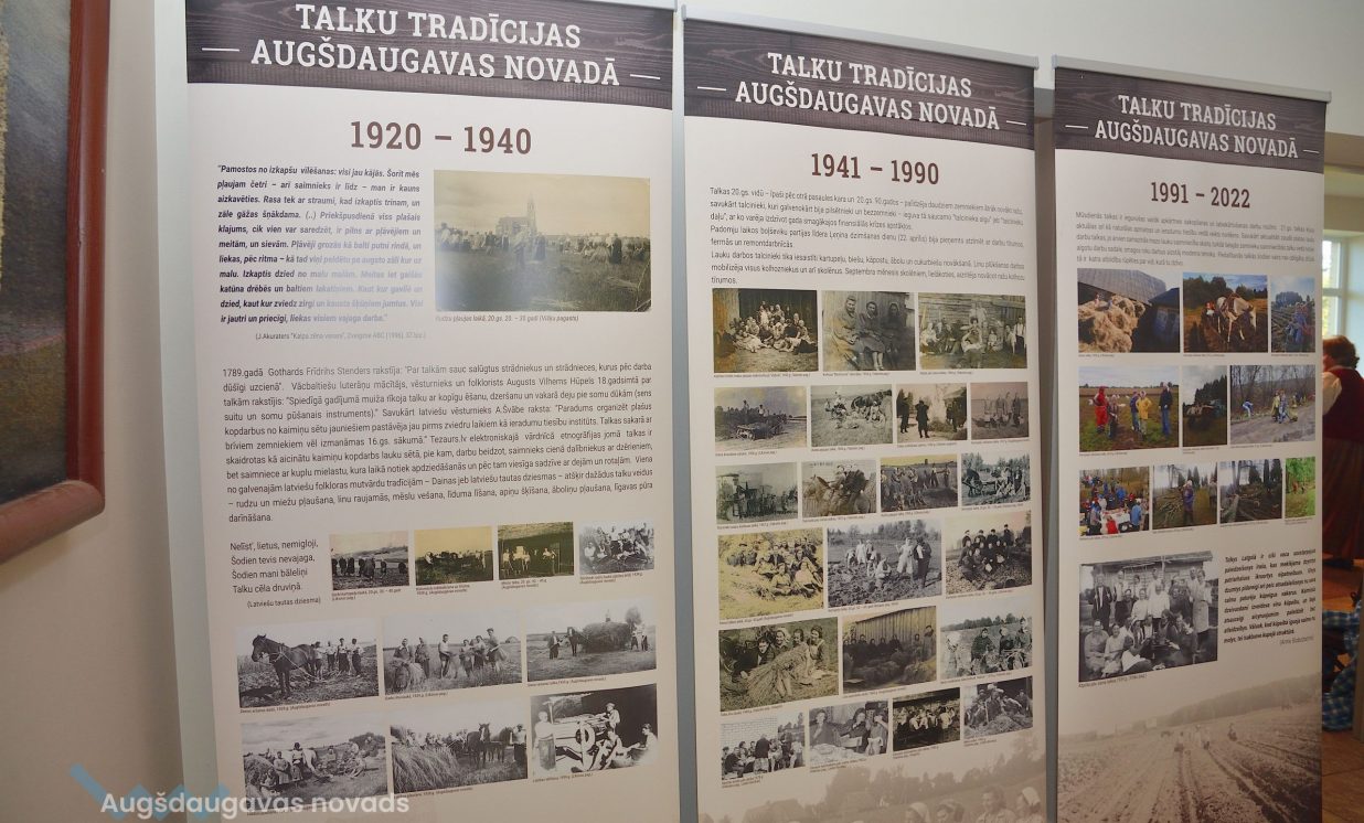 Projekta ietvaros tapusi arī izstāde “Talku tradīcijas Augšdaugavas novadā”, kurā apkopotas fotogrāfijas kopš pagājušā gadsimta sākuma līdz mūsdienām. Izstādi var aplūkot Kulināra mantojuma telpās.