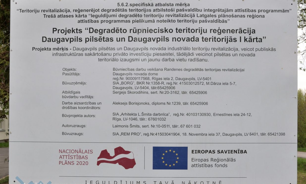 Minētā teritorija izveidota realizējot 5.6.2.specifiskā atbalsta mērķa “Teritoriju revitalizācija, reģenerējot degradētās teritorijas atbilstoši pašvaldību integrētajām attīstības programmām”, trešā atlases kārtas “Ieguldījumi degradēto teritoriju revitalizācijā Latgales plānošanas reģiona attīstības programmas pielikumā noteikto teritoriju pašvaldībās” sadarbības projektu Nr. 5.6.2.0/17/I/003 ”Degradēto rūpniecisko teritoriju reģenerācija Daugavpils pilsētas un Daugavpils novada teritorijās I kārta”. Autors un foto: Dainis Bitiņš