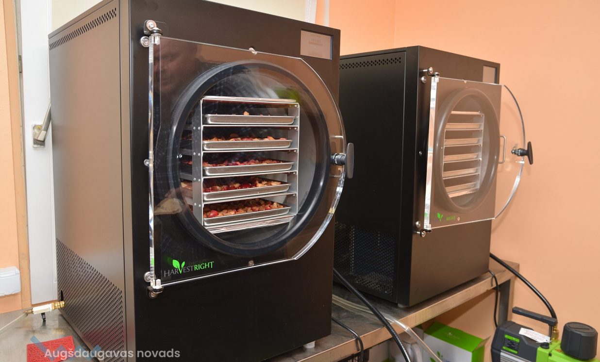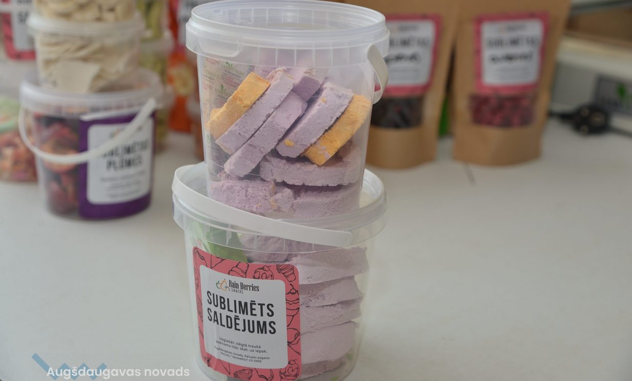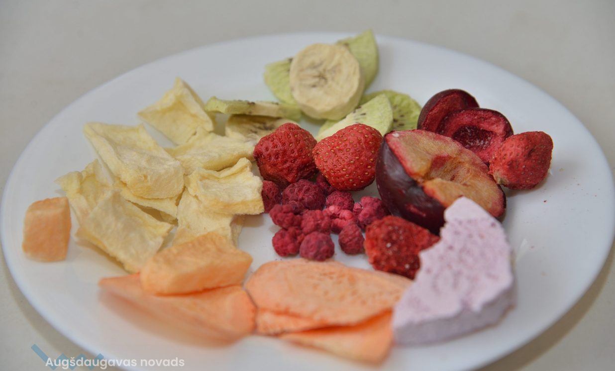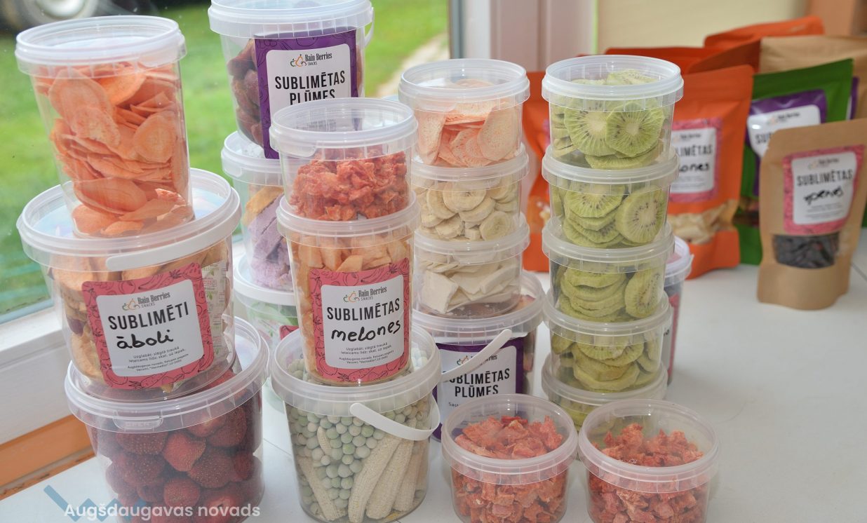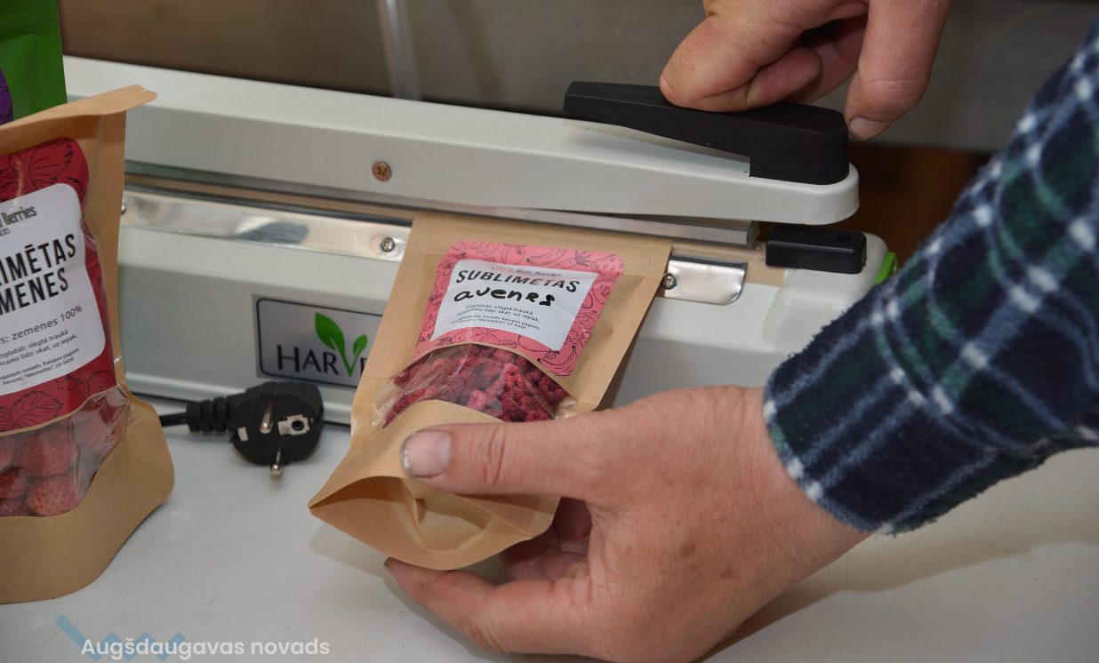 Nelielā ražošanas telpā klusi dūc iekārta, kurā gatavinās kārtējā sublimēto ogu porcija. Saimnieki aicina nogaršot gatavo produkciju, kuru ražot uzsākuši vien pirms mēneša. Paciņās un plastmasas kārbās rindojas visdažādākā produkcija, kas gatava doties pie sava patērētāja. Gan pašu audzēti, gan eksotiski augļi, ogas un dārzeņi – veselīgs našķis, ar ko palutināt garšas kāpiņas.