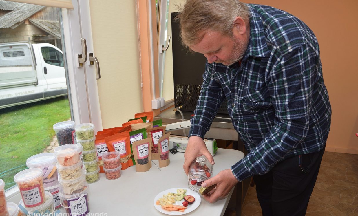 Saglabāt vasaras smaržu, garšu un vitamīnus var dažādi. Kalupes lauksaimnieka Normunda Rozentāla saime atradusi savu pieeju un pašu bioloģiskajā piemājas saimniecībā “Vecmežiņi” uzsākusi sublimēto augļu, ogu un dārzeņu gatavošanu.