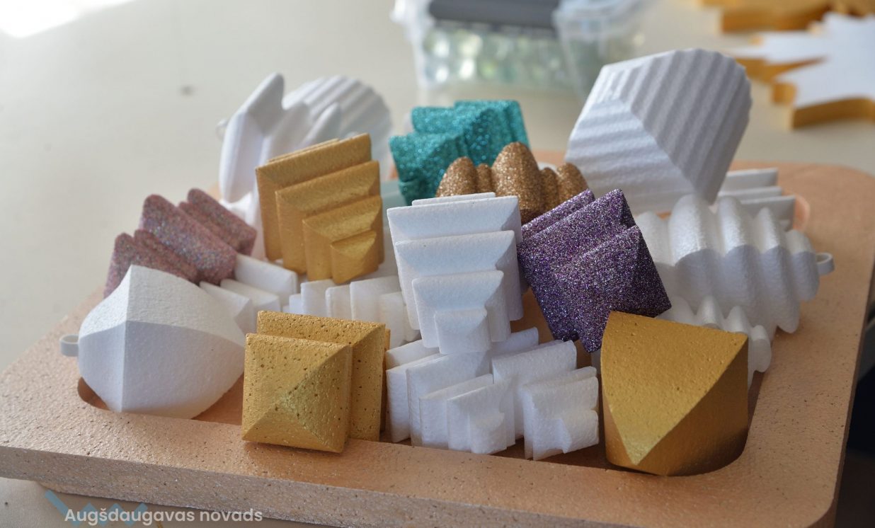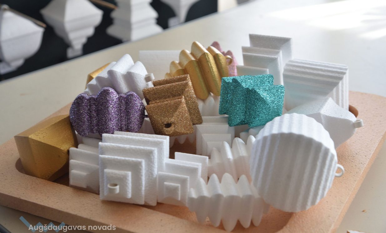 “Tagad es varu ražot daudz drošāk un daudz lielākos kvantumos. Es lieku akcentu uz divu veidu produkciju. Vieni ir dekoratīvie fasādes elementi, kas nebaidās no atmosfēras iedarbības un saules. Otrs veids ir dekoratīvas lietas visādiem svinīgiem pasākumiem - gan plakanas, piemēram, burti un logo, gan Jaungada eglīšu rotājumi,” stāsta Viktors.