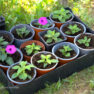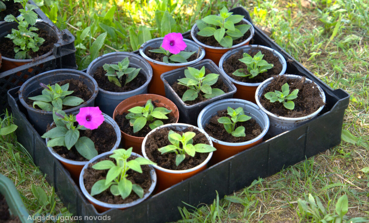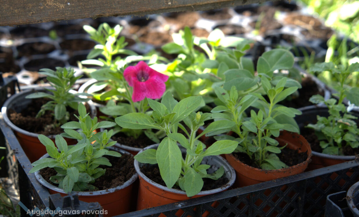 leduspuķu un petūniju stādi. Daudzus augus Jolanta mēģina audzēt pati, pavairojot ar spraudeņiem, piemēram, rozes.