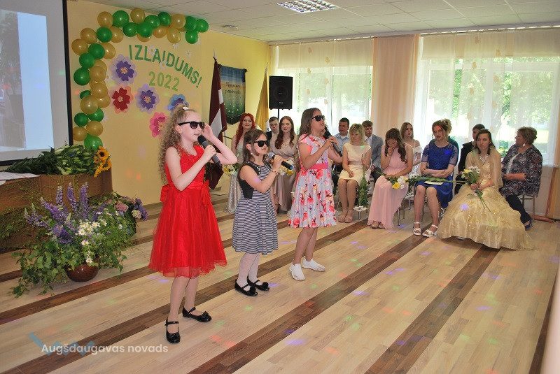 Visus klātesošos izlaidumā priecēja skolas vokālā ansambļa „Ķipariņi” muzikālie sveicieni.