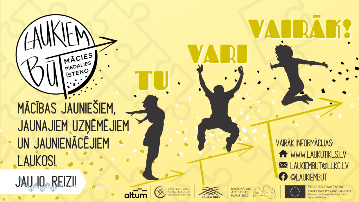 Lieliska iespēja jauniešiem, kuri jau strādā vai vēl tikai plāno uzsākt un attīstīt uzņēmējdarbību laukos, piedalīties bezmaksas mācībās un konkursā "Laukiem būt".