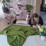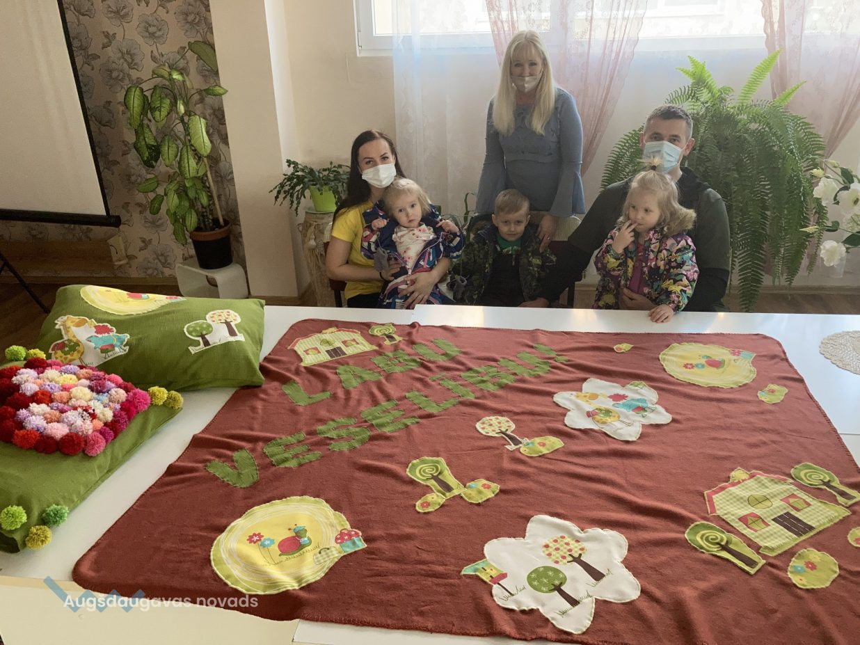Rezultātā tapa skaists pleds ar aplikācijām un uzšūtu veselības vēlējumu un divi spilveni. Viens no tiem tika izrotāts ar bērnu darinātajiem dzijas bumbulīšiem, izvietotiem sirsniņas formā, lai simboliski nodotu mūsu labās domas un sirds siltumu Ozoliņu ģimenei , viņiem grūtajā periodā.