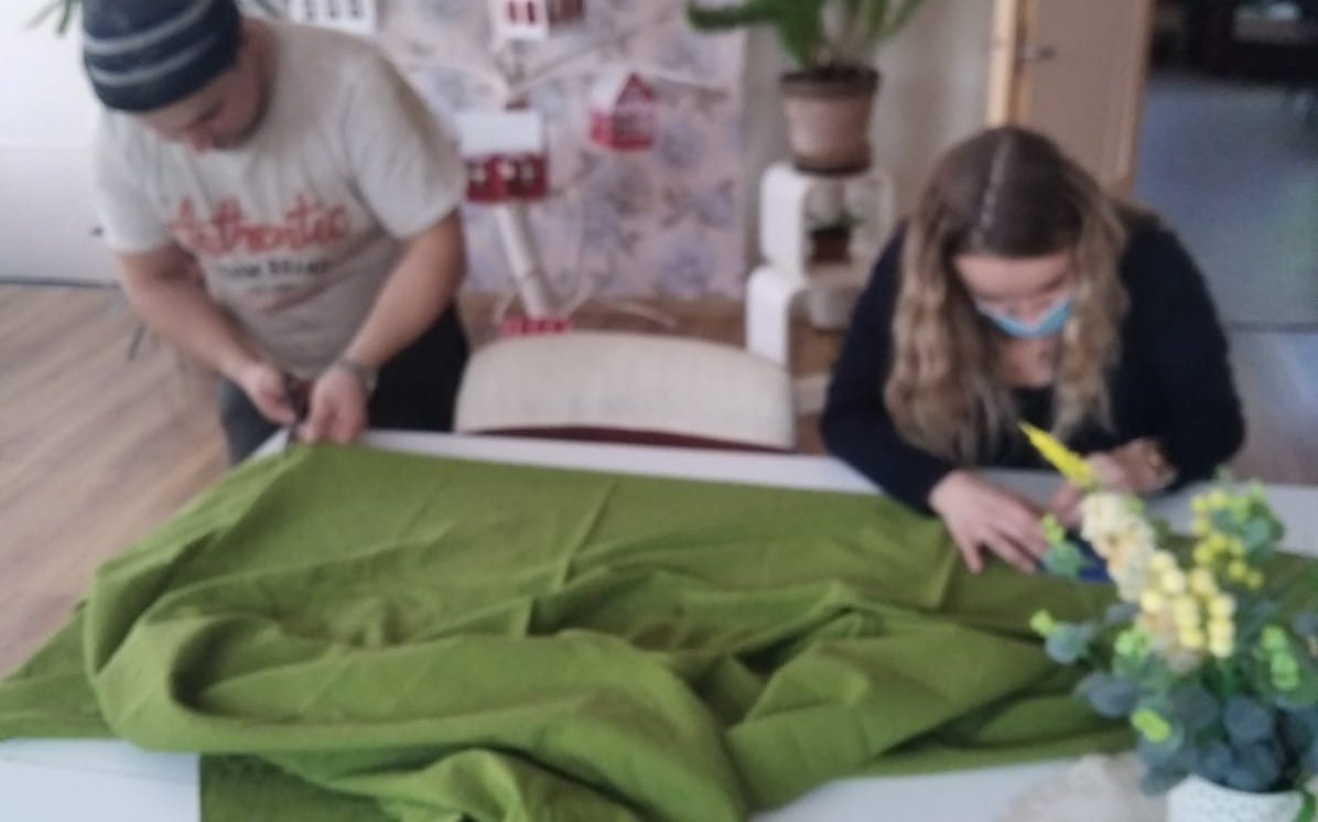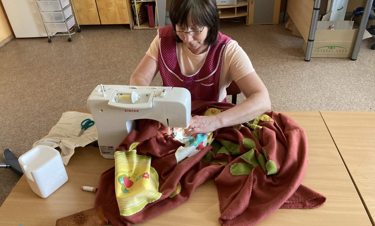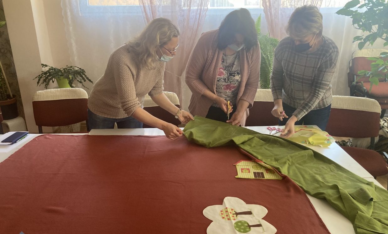 Par sponsorētajiem līdzekļiem iegādājāmies profesionālu šujmašīnu, tvaika gludekli, pledu, spilvenus un uzsākām organizēt akcijas norisi. Mūsu ideja bija izgatavot ar aplikācijām rotātu pledu un spilvenus, kas būtu kā mīļa dāvana atveseļošanās atbalstam.