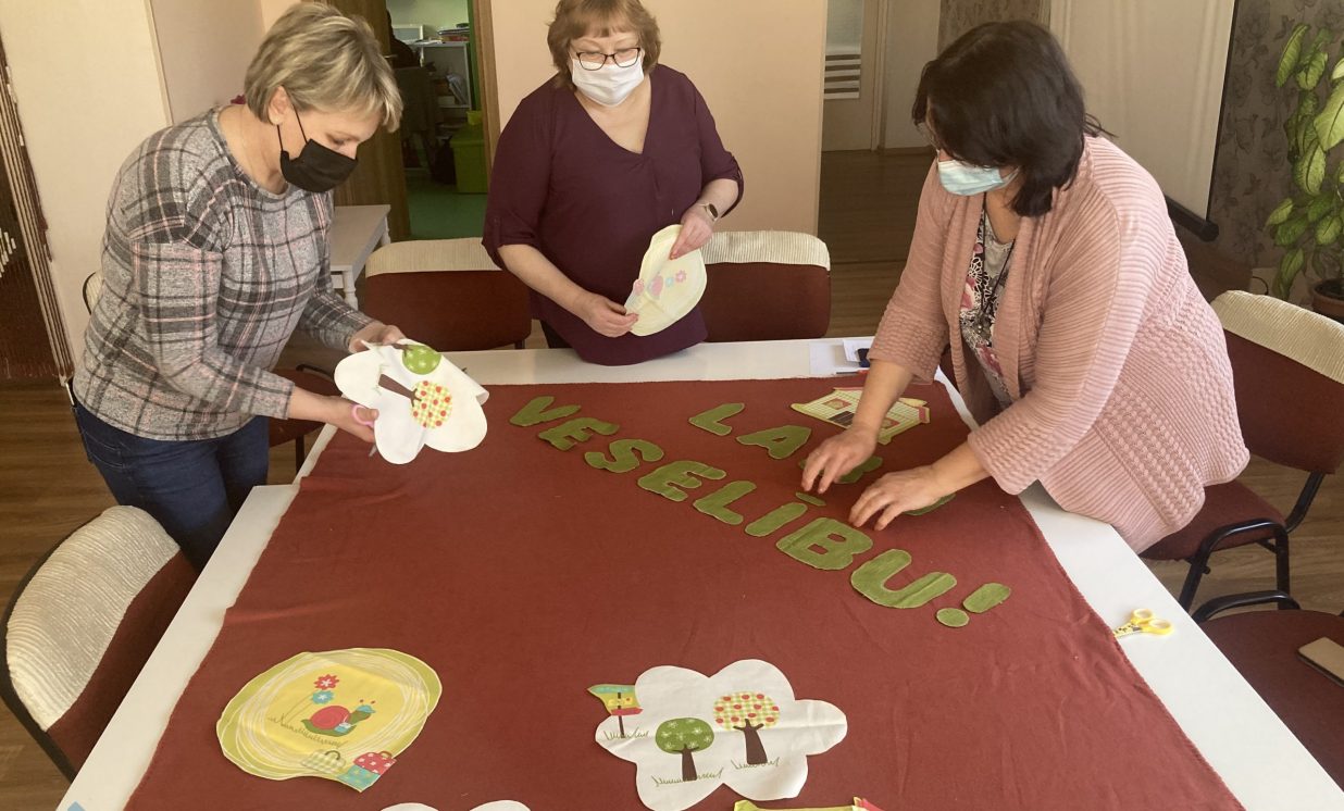 Kristaps ir arī mūsu iestādes padomes sastāvā, tāpēc vispirms atsaucās Iestādes padomes priekšsēdētāja Guna Smagare, kura organizēja vecākus ziedot audumus, diegus un dziju, kā arī palīdzēt uzsākt darbu ar aplikāciju sagatavošanu. Vēlāk aktivitātē iesaistījās arī iestādes darbinieces, gan skolotājas, gan skolotāju palīgi. Arī iestādes bērni tika iesaistīti , izgatavot katrs pa krāsainam dzijas bumbulītim.