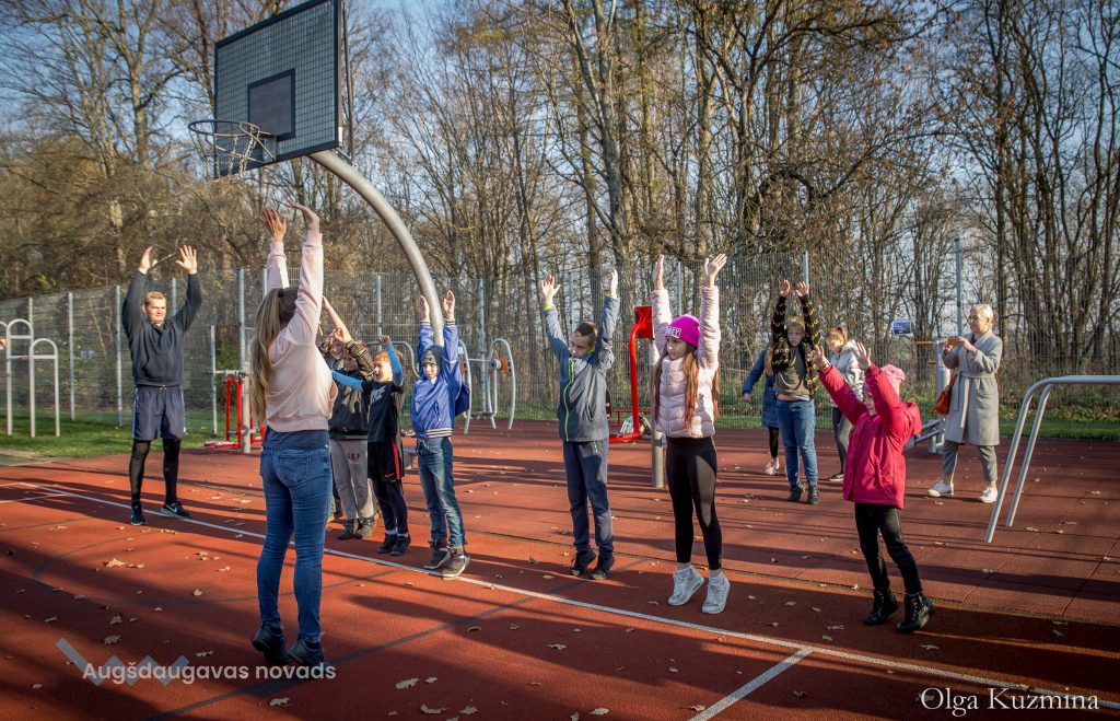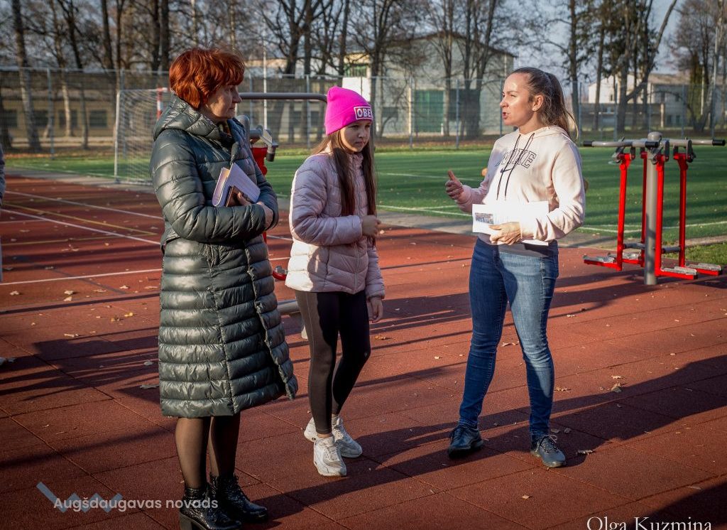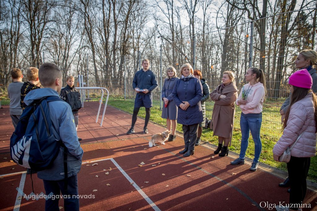 Naujenes pagasta pārvaldes vadītāja Ināra Miglāne pateicās par radīto āra trenažieru laukumu, kur vingrot bez maksas var ne tikai bērni un jaunieši, bet visa vecuma pagasta iedzīvotāji, kā arī pauda cerību, ka nākotnē varēs izveidot šādus āra vingrošanas laukumus arī pārējos pagasta ciemos. Savukārt fizioterapeite Jeļena Galilejeva pastāstīja par to, kāpēc ir svarīgi vingrot un kā tas palīdz stiprināt muskulatūru. Viņa arī atzina, ka šie āra trenažieri ir lielisks veids, kā uzlabot savu fizisko formu, jo, pateicoties tiem, ir iespējams izveidot individuālu un daudzveidīgu vingrojumu kompleksu un darīt to ārā, stiprinot imunitāti. J.Galilejeva arī parādīja vairāku iesildīšanās un atsildīšanās vingrojumu kompleksus.