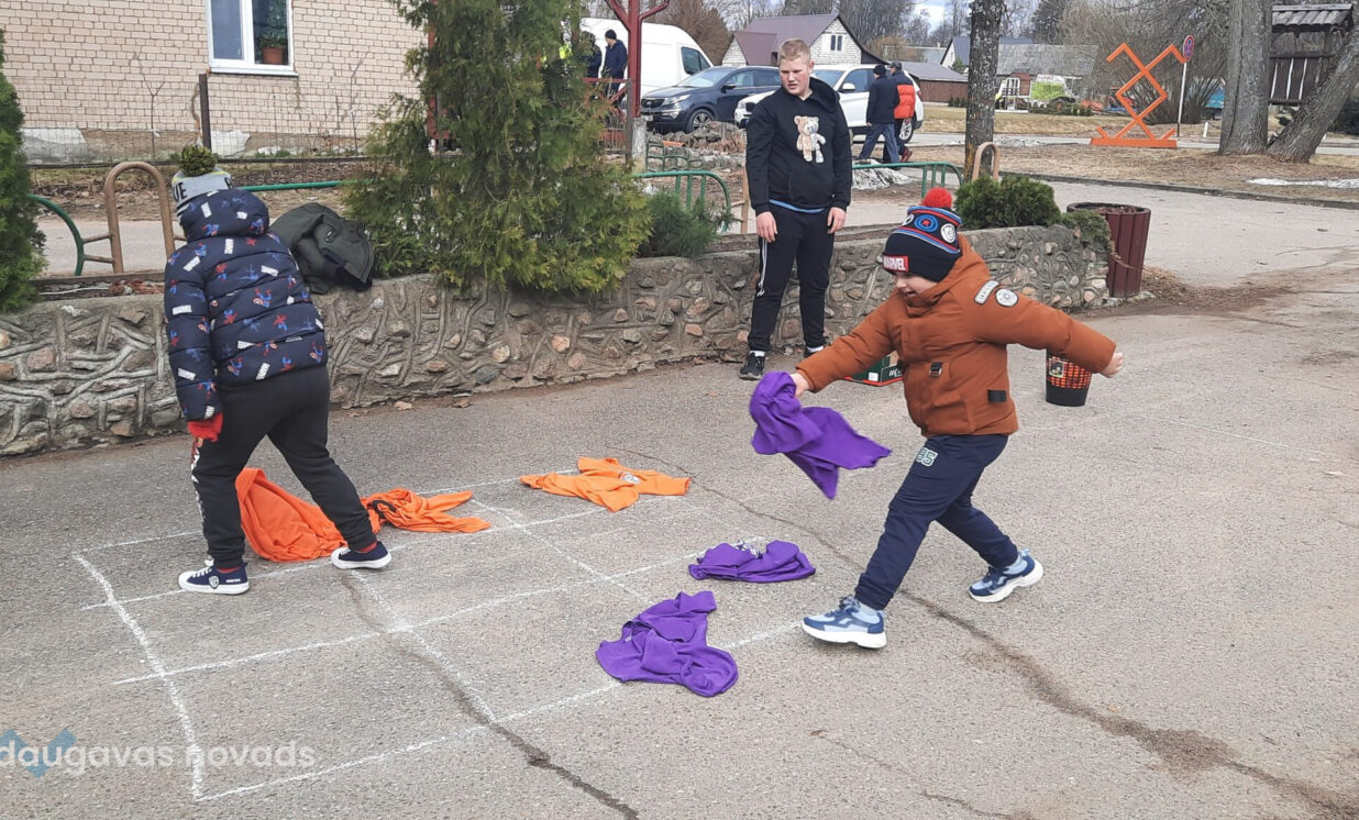 Sporta pasākumu organizatore Ināra Lapkovska kopā ar jauniešiem vadīja dažādus konkursus, varēja spēlēt golfu, galda tenisu, aizpildīt “rūtiņas” uz asfalta. Mūsu saimniecības dienesta spēkiem bija uzstādīts stabs, kurā bija uzkārti maisiņi ar dāvanas nosaukumu, vajadzēja tikai uzrāpties līdz staba augšai.