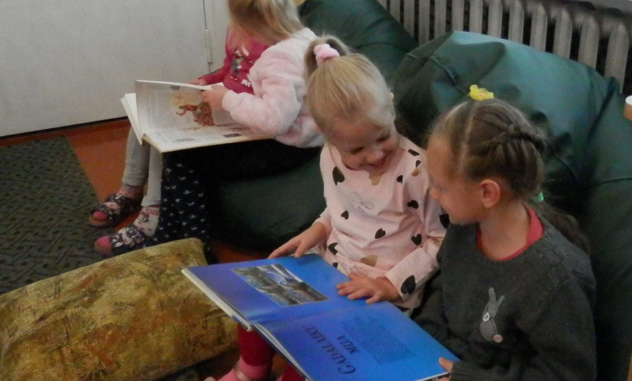 Lai turpinātu izzinošo ceļojumu grāmatu pasaulē, bibliotēkā laipni gaidīti bērni kopā ar vecākiem.