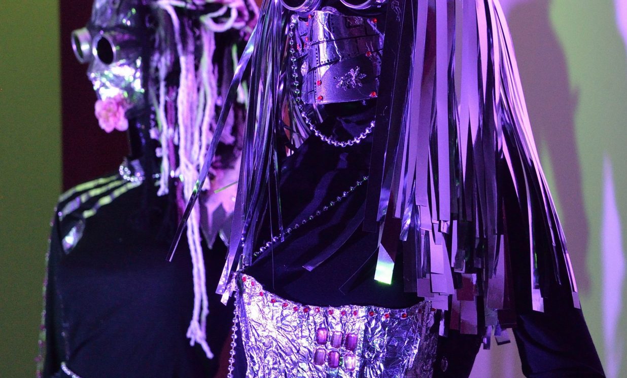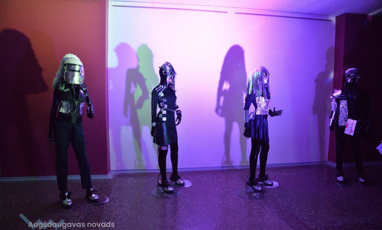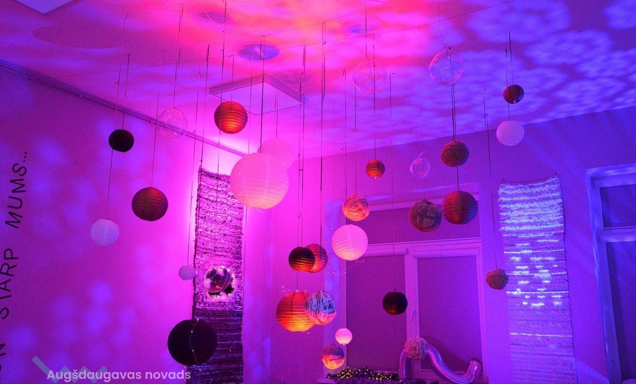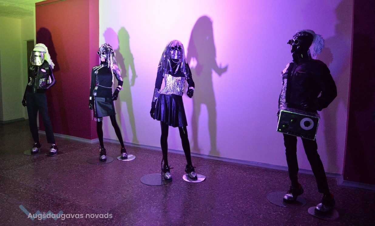 Kosmiskas domas un idejas 2021. gadā virmoja ne tikai Naujenes, bet arī Višķu pusē, tāpēc izstādē var redzēt arī Špoģu Mūzikas un mākslas skolas audzēkņu darbus no netradicionālās modes skates kolekcijas „Kosmoss. Planētas. Visums”. Tos izstādei sarūpēja mākslas skolas pasniedzēji Valdis Grebežs un Anita Jasinska. Lai arī pērn pandēmijas dēļ modes skate izpalika, taču audzēkņu veikums nepalika nepamanīts un rotā abu rokdarbnieču kosmisko izstādi.