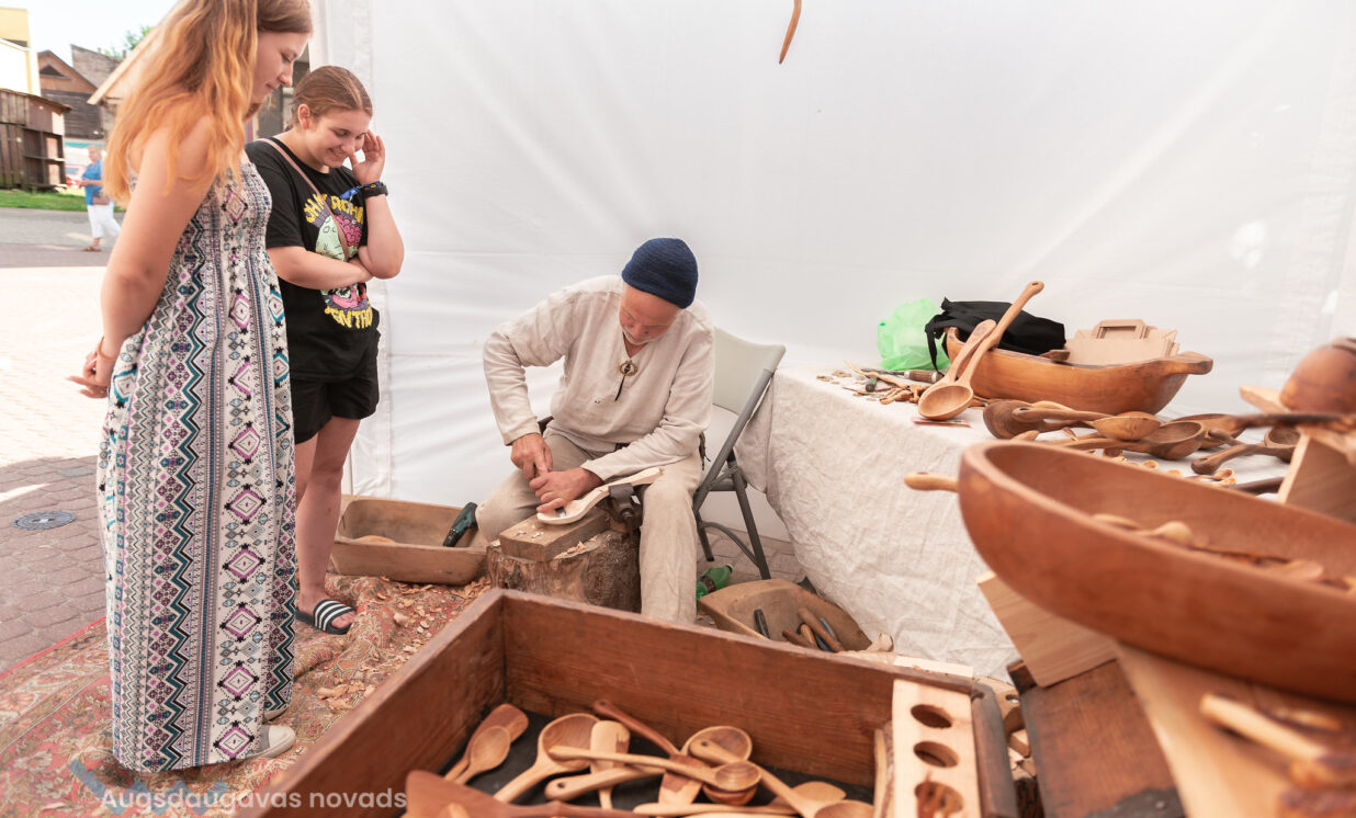 Savukārt amatu teltīs ar radošajām darbnīcām organizatori aicināja iemēģināt roku dažādu lietišķo mākslu veidos. Ikkatrs interesents varēja iepazīt karošu grebšanu, koka dēlīšu apgleznošanu, tradicionālo salmu leļļu darināšanu, pērļošanu, izšūšanu, rotu veidošanu, pīšanu, tekstila pagleznošanu un citas prasmes. Amatniecības prasmes ir nozīmīga kultūras atslēga, kas atklāj katrai nācijai raksturīgo krāsu un formu izjūtu, mīlestību pret dabas materiāliem un prasmi tos vērst lietderīgā un krāšņā kultūras liecībā.