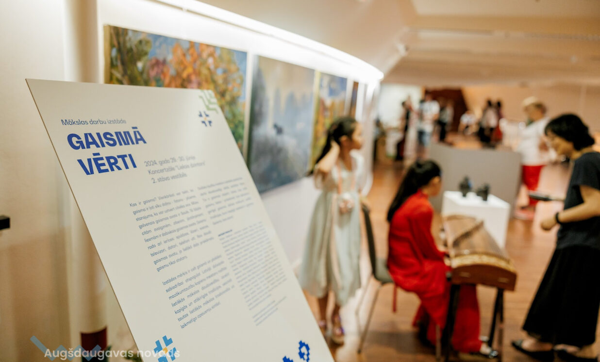 “Lielajā dzintarā” tika atklāta mazākumtautību mākslinieku izstāde "Gaismā vērti". Biedrības “Sadarbības platforma” valdes priekšsēdētāja un izstādes projekta vadītāja Lauma Celma stāsta, ka pirmo reizi šāda izstāde notika pagājušā festivāla laikā Jelgavā. Pieredze bija veiksmīga un arī šoreiz organizatori uzrunāja dažādu jomu māksliniekus: “Gribam paradīt ne tikai dažādo Latvija dzīvojošo tautu iedzīvotāju kultūru kā dziedošu, dejojošu, spēlējošu, bet arī ļoti dažādos un daudzveidīgos darbus, ko viņi dara… Ir kaut kādas ļoti tradicionālas lietas, kas šeit izstādē ir redzamas, bet mēs centāmies šogad parādīt to, kā dažādo tautību cilvēki ienes savu kultūru arī caur dažādiem mākslas darbiem. Vistālākā no mums māksla ir ķīniešu māksla, ko mēs šodien šeit redzam. Ir eļļas, akrila glezniecība, gravīras, keramika, mums ir pinumi, kas gan vairāk būtu kā lietišķa māksla,” stāsta Lauma. Izstādē varēja aplūkot arī slāvu tautām populāras lellītes, ko sauc par oberegiem, rotaslietas un koka traukus, taču pārstāvēti bija arī tādi mākslas virzieni kā kubisms. Savu pienesumu bija devuši arī ukraiņu mākslinieki, kuri, bēgot no kara, ir iedzīvojušies šeit Latvijā.