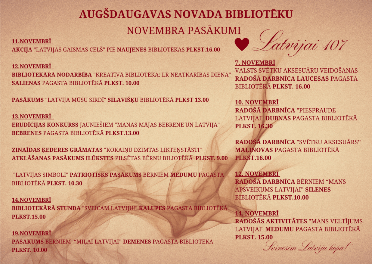 Augšdaugavas novada bibliotēku svētku pasākumu piedāvājumi