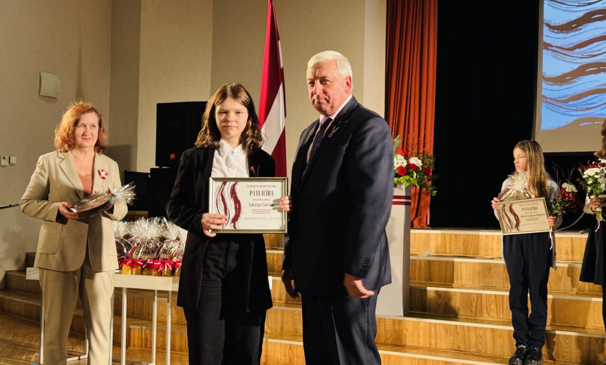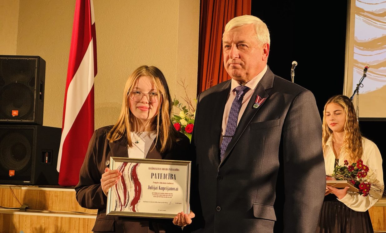 9. novembrī Augšdaugavas novada Kultūras centrā “Vārpa” tika godināti 23 skolēni no 16 Augšdaugavas novada izglītības iestādēm. Pasākuma laikā ne tikai varēja uzzināt par katra nominanta sasniegumiem, bet arī ieklausīties pārdomās, kas katram no viņiem ir Latvija.