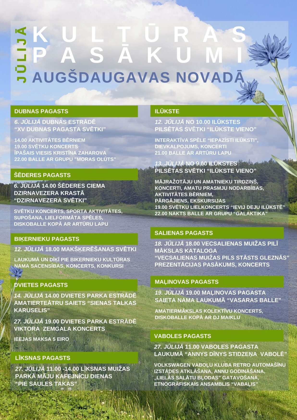 Augšdaugavas novada kultūras pasākumi jūlijā