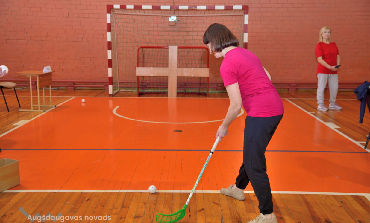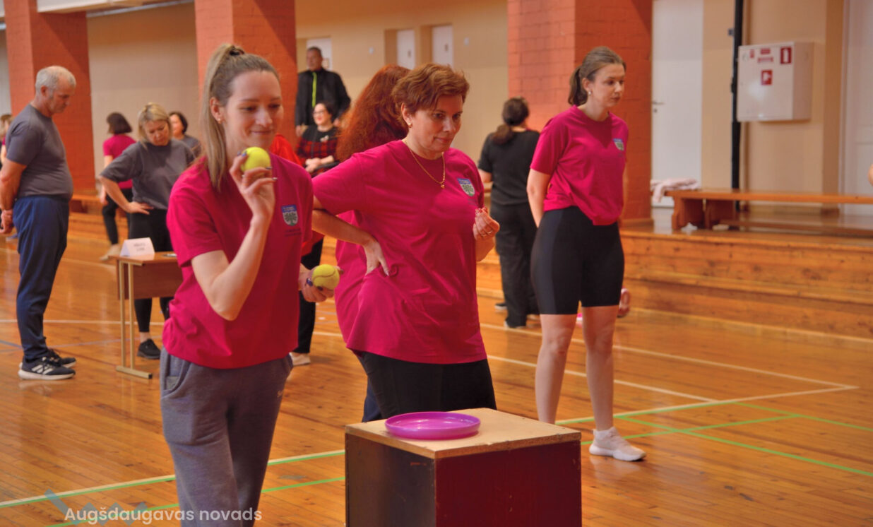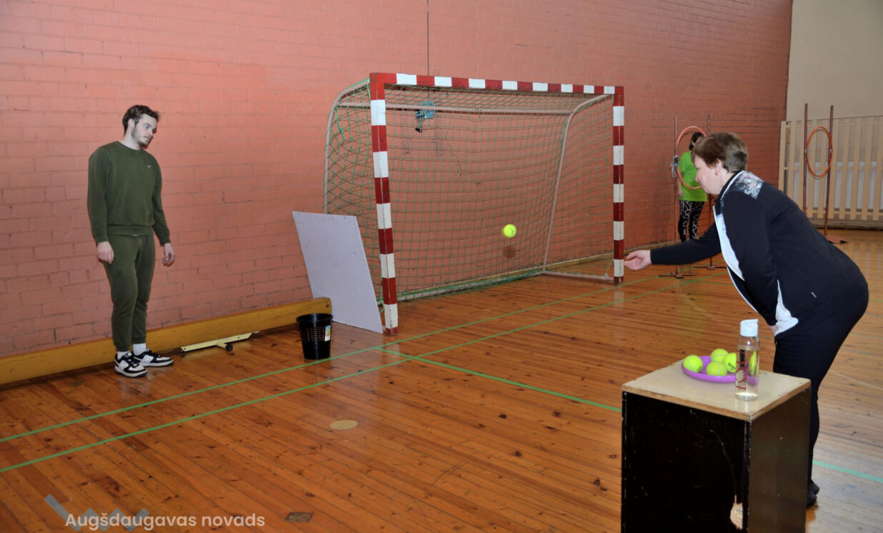 Porolona bumbiņas sišana mērķī: 1. vieta Augšdaugavas novada Sporta skola.