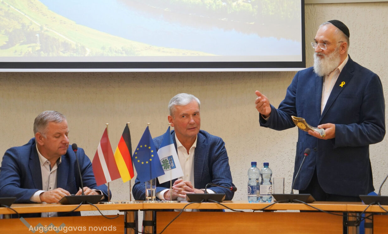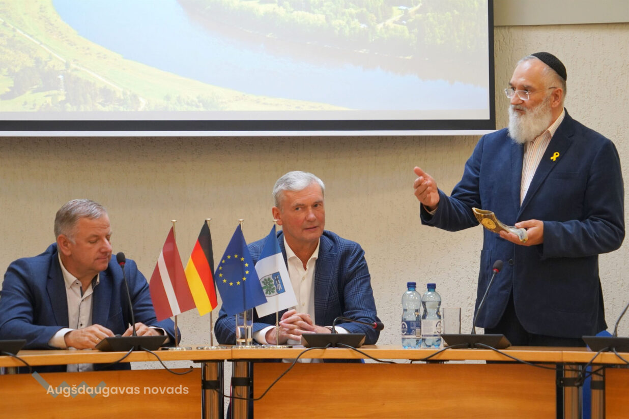 Biedrības “Trīs pakāpieni” (Drei Stufen) vadītājs Baruhs Čauskins pastāstīja, ka no Vācijas atbrauca 18 dažādu jomu speciālisti, tostarp 10 pedagogi un trīs skolu vadītāji, Osnabrikas pašvaldības vadība, Holokausta muzeja darbinieki un pētnieki. Daļa viesu devās apmeklēt Špoģu vidusskolu un apspriest kopīgus tālākus projektus. “Mēs vēlamies pievērst Vācijas uzmanību Eiropas Austrumu robežai, Latvijai, tieši Augšdaugavas novadam, jo Eiropai ir svarīgi turēties kopā, es to ļoti labi saprotu, jo paša dzimtās vietas ir šeit. Mums ar novadu ir ciešas draudzīgas attiecības kopš 2017. gada un mēs vēlamies tās stiprināt dažādās jomās un līmeņos. Esmu pamanījis, ka tad, kad es stāstu savas dzimtas, kas nāk no Višķiem, dzīvesstāstu, Latvijā vai Vācijā jaunieši vai vecākas paaudzes cilvēki sāk aizdomāties par savu vēsturi, kas dara viņus stiprākus, un tas ir svarīgi. Kad katrs no mums cienī savas tradīcijas, tad spēj saprast citus. Ceru, ka ar Dievpalīgu mums viss izdosies arī turpmāk.”