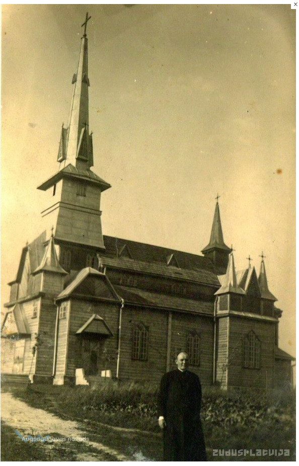 Attēlā redzamais priesteris iespējams ir Jānis Romanovskis, kas vadīja baznīcas celtniecību.