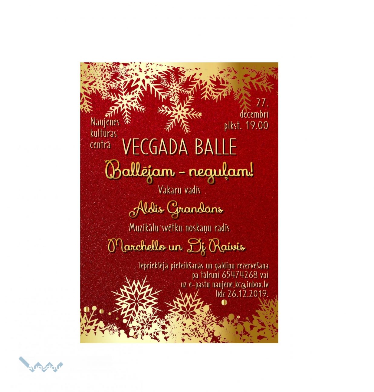 Apbruņojaties ar visgaršīgākajiem pīrādziņiem, vissmaržīgāko karstvīnu, sapucējiet sevi, savus radus un draugus, obligāti līdzi paņemiet ērtas deju kurpes un mēs jūs gaidīsim 27. decembrī Naujenes kultūras centrā. Balles sākums – plkst. 19.00, taču esiet mazliet agrāk, neesiet tas viens viesis, kas vienmēr visur kavē… Vairāk informācijas kā arī iepriekšējā pieteikšanās un galdiņu rezervēšana pa tālruni 65474268 vai uz e-pastu naujene_kc@inbox.lv līdz 26.12.2019.