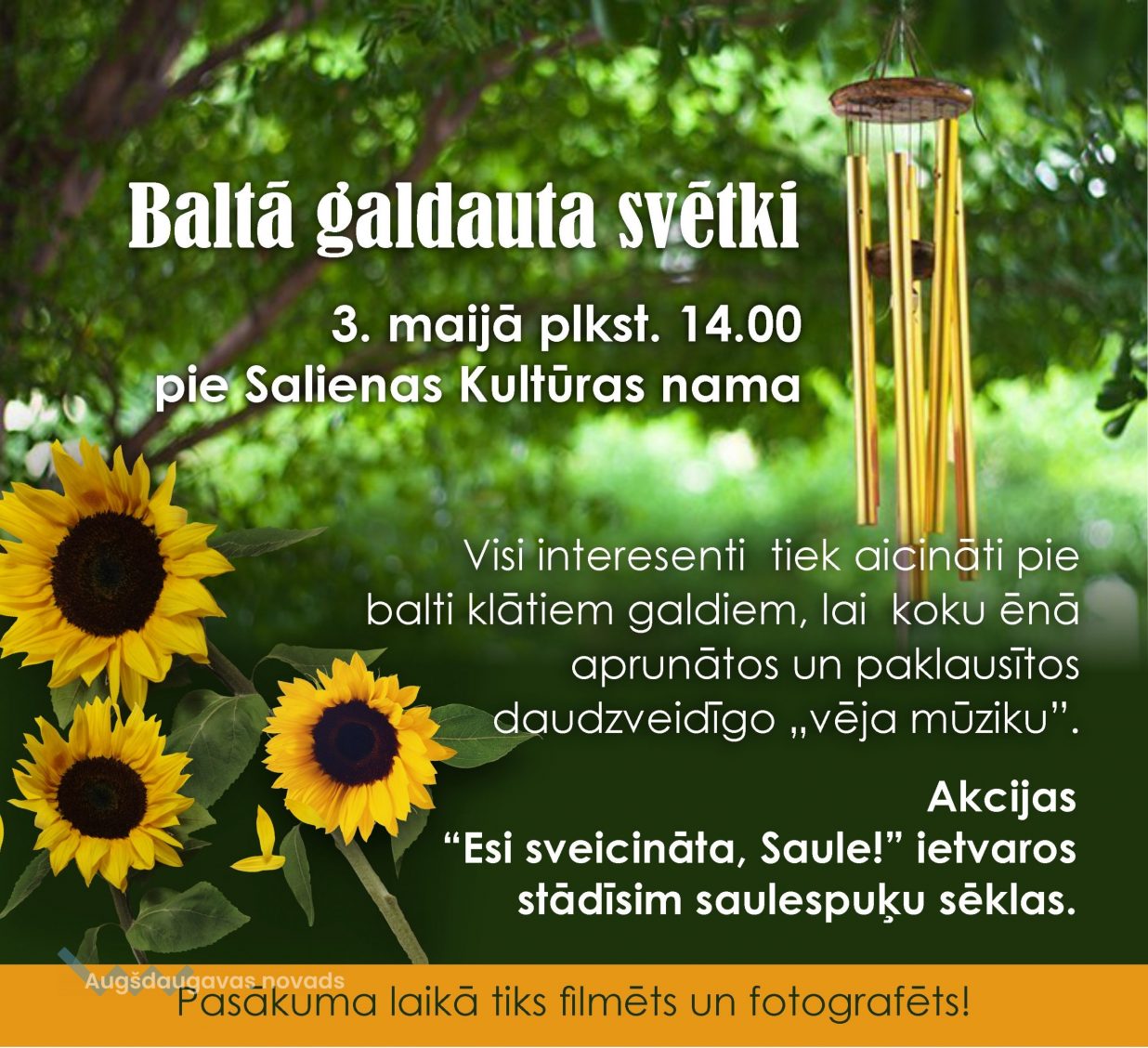 3. maijā plkst. 14.00 pie Salienas kultūras nama norisināsies Baltā galdauta svētki.