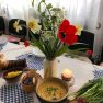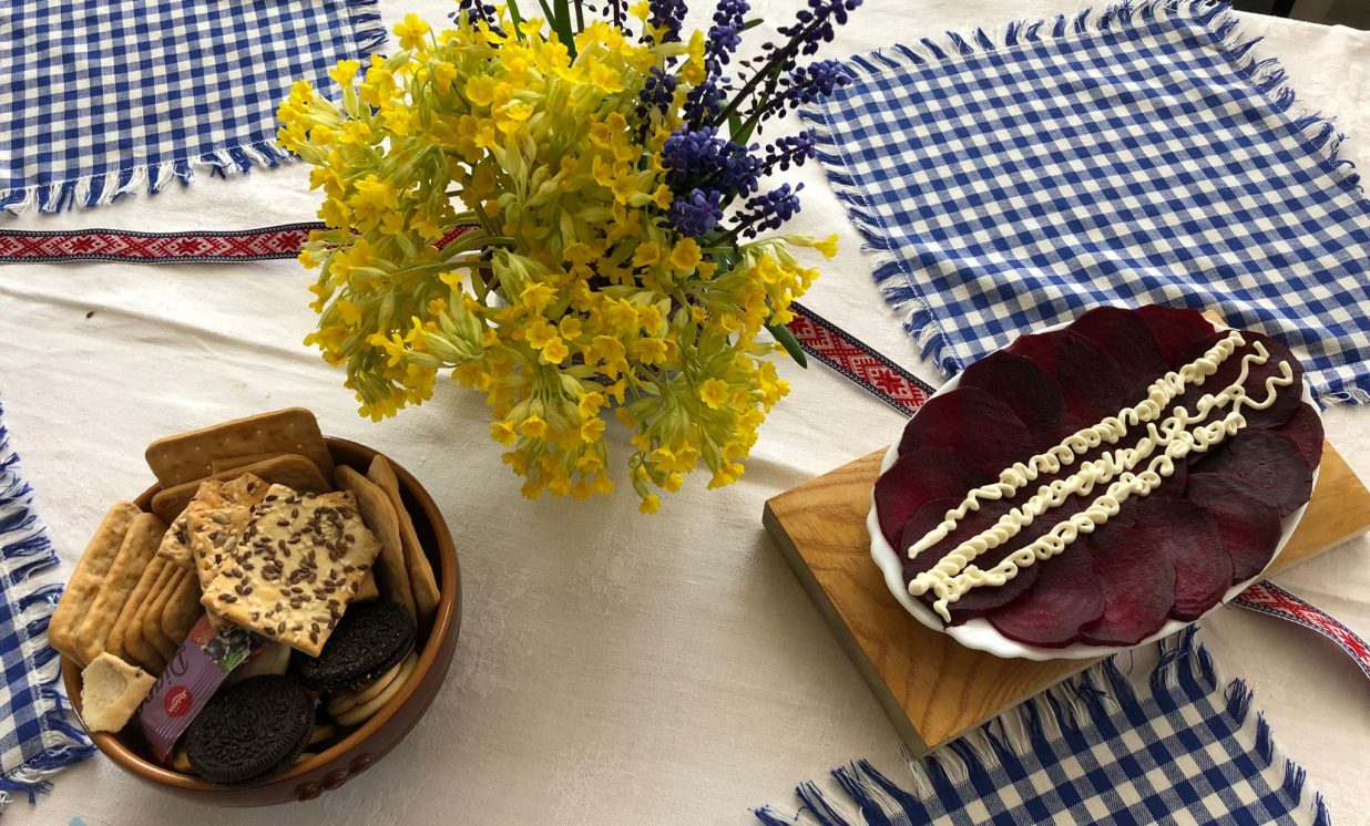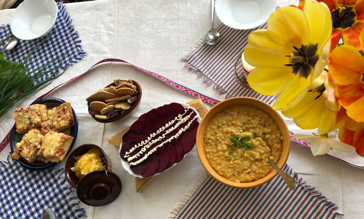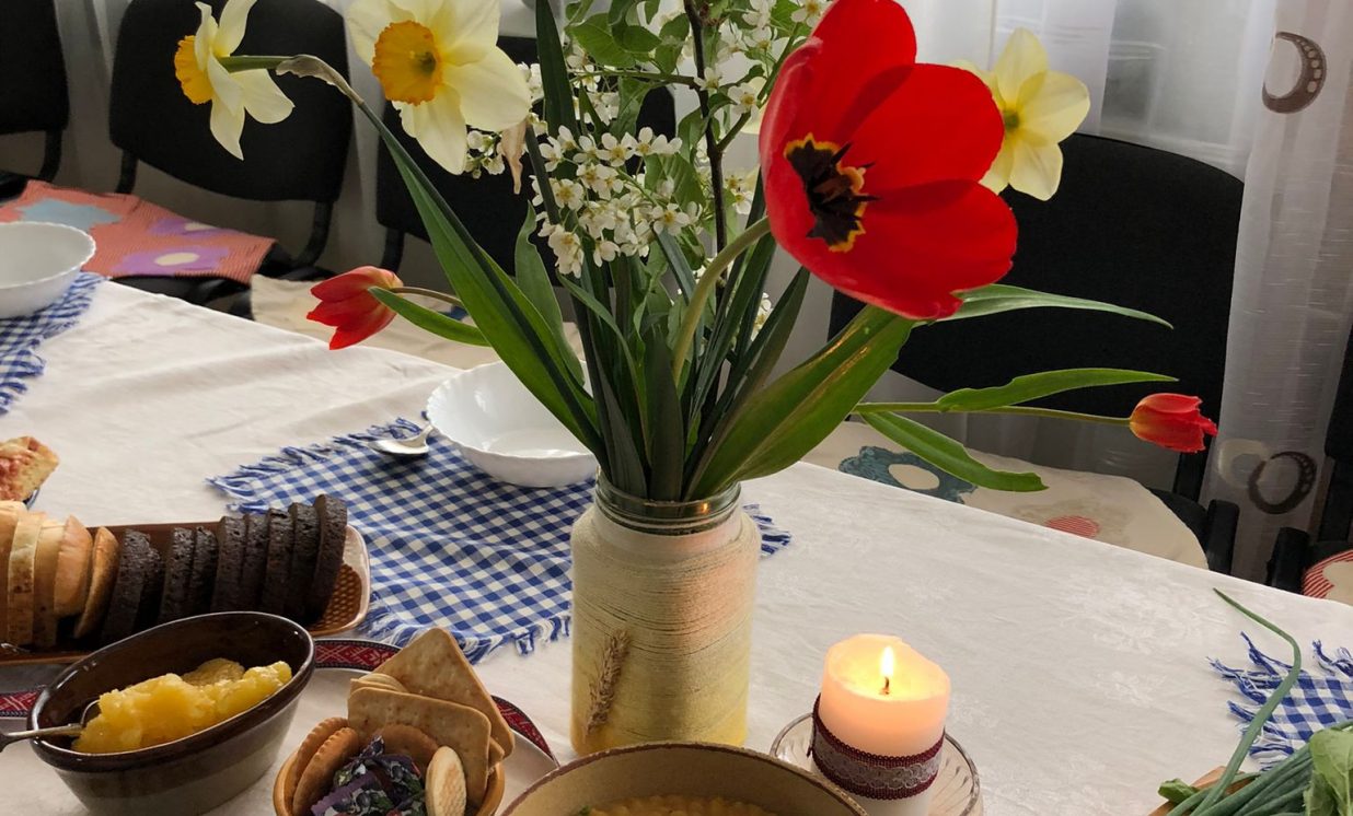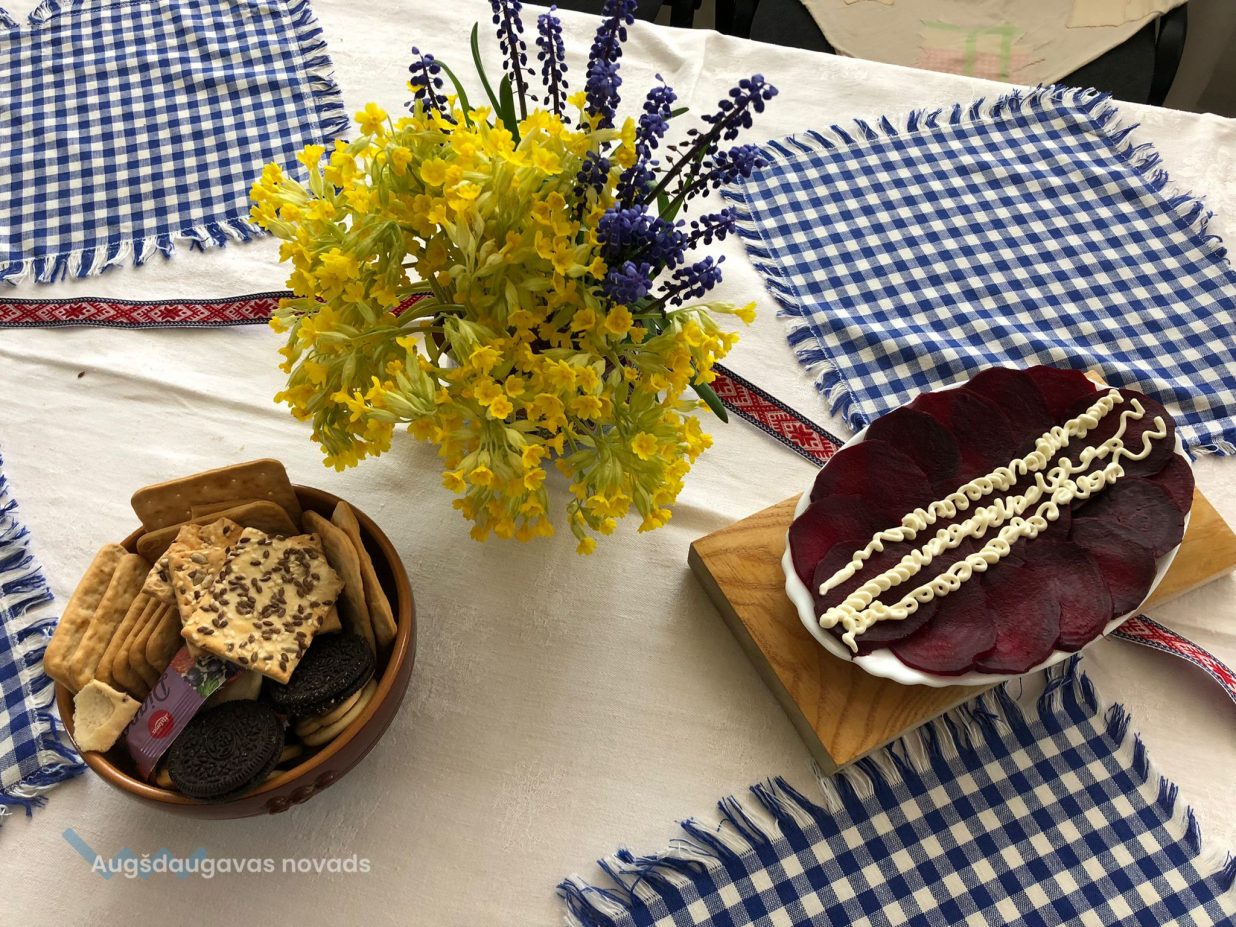 Uzklājot balto galdautu, galdā klājām tradicionālos latviešu ēdienus – pašgatavotus sautētus zirņus ar speķi, speķa pīrādziņus, rudzu spēka maizīti, kopīgi pagatavotu lielo pīrāgu ar āboliem un vārījām ābolu ķīseli ar dzērvenēm. Pateicoties saulainajam laikam, pēc gardajām maltītēm visi kopīgi devāmies pastaigā uz Višķu Sv. Jāņa Kristītāja Romas katoļu baznīcu.