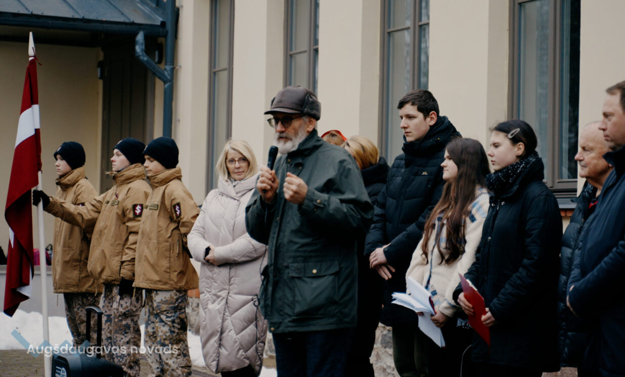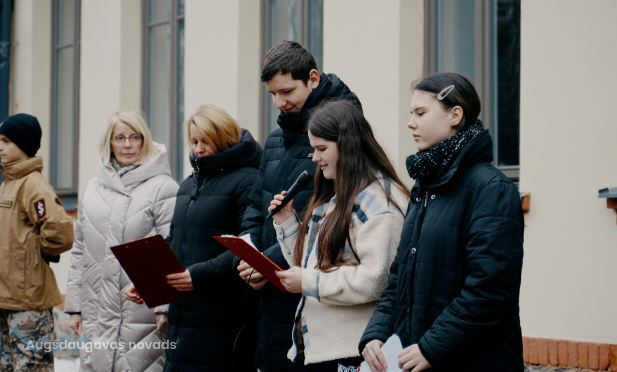 8.klases skolnieces L.Jankovska un S.Boluža lasīja fragmentus no latviešu valodas stundās skolēnu rakstītajām vēstulēm barikāžu dalībniekiem: “Gribu pateikt vienkāršu, bet sirsnīgu paldies! Cilvēcisku paldies par to, ka ticējāt Latvijas neatkarībai”, ”Skatoties atcerei veltīto video, sirds sažņaudzās, jo ir grūti iztēloties, ko izdzīvojāt jūs, lai Latvija būtu brīva. Esmu ļoti priecīga un pateicīga, ka pirms 34 gadiem cilvēki sadevās rokās, lai aizstāvētu Latviju.”