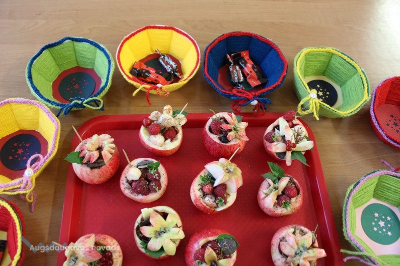 Šoreiz gatavojām ābolu desertu - pildījām ābolus ar augļiem, ogām, šokolādi, zaļumiem, kā arī no papīra un dzijas veidojām groziņus saldumiem. Aktīvie un darbīgie centra iedzīvotāji ar entuziasmu un aizrautību izgrieza, bēra, pildīja, pina, līmēja, tamborēja un priecājās par katru paveikto darba posmu un visu padarīto darbu kopā.