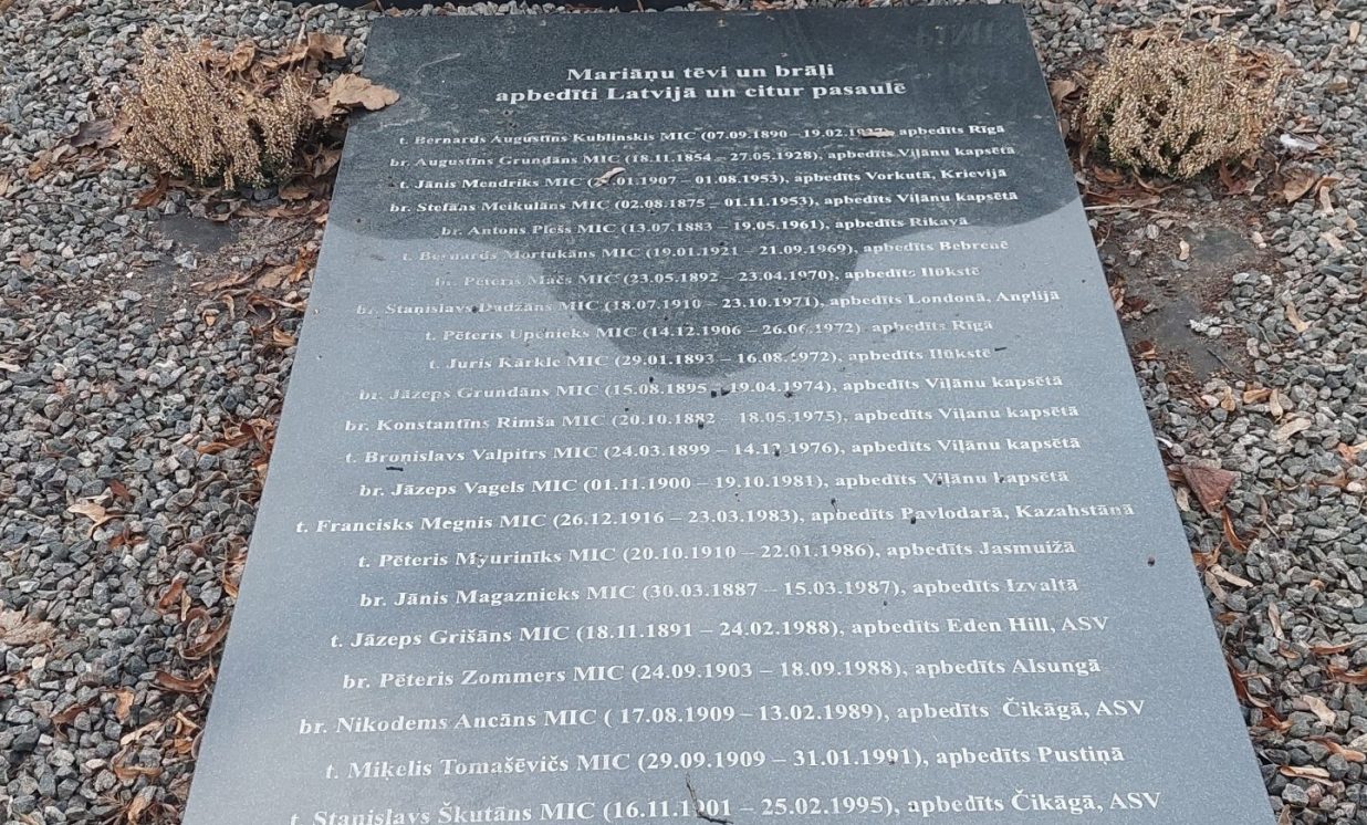Baznīcas dārzā tika apraudzīts Viļānu klostera bijušā draudzes pārvesta un priekšnieka Mariāņu tēva Benedikta Skrindas (1868 – 1947)kapa vieta. Viļānu klosterī tēvs Benedikts kalpoja 14 pēdējos savas dzīves gadus. Tēvs Benedikts pildīja prāvesta, klostera priekšnieka, novicināta maģistra un citus pienākumus. Tēvs Benedikts labi pārzināja saimnieciskā lietas, pats vadīja būvdarbus klosterī un zemes apstrādāšanā ievēroja modernās zemkopības prasības. Viss tika savests kārtībā, klosterim tika uzbūvēts otrais stāvs, ar laiku sāka funkcionēt saimniecība, kas bija viena no labākajām Latvijā. Tēvs Benedikts savas dzīves laikā rūpējās par Latgales tautas garīgo izglītību, tulkojot un izdodot vairākus garīgā satura darbus: „Svātam Stanislavam Kostkai” (1913), „Atmiņas par bazneickungu Kazimiru Skrindu” (1936), tulkojis latgaliešu valodā pasaulslaveno Kempenas Toma darbu „Par Kungam Jezum pakaļdareišonu.” (1914, 1936).