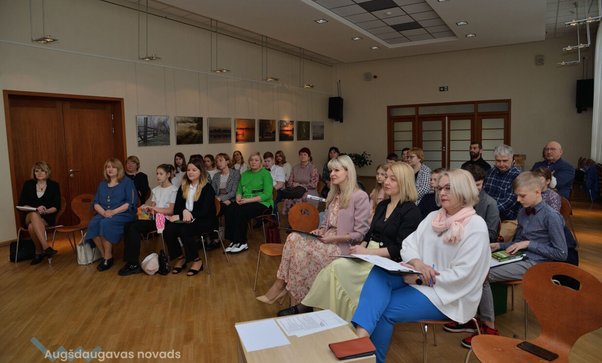 Kamēr žūrija devās apspriesties, Augšdaugavas novada bibliotēku metodiskā centra vadītāja Žaneta Moiseja aicināja klātesošos uzspēlēt dažādas galda spēles, tostarp ielūkoties “Putreņvourdu voceleitē” un pārbaudīt savas zināšanas latgaliešu valodā.